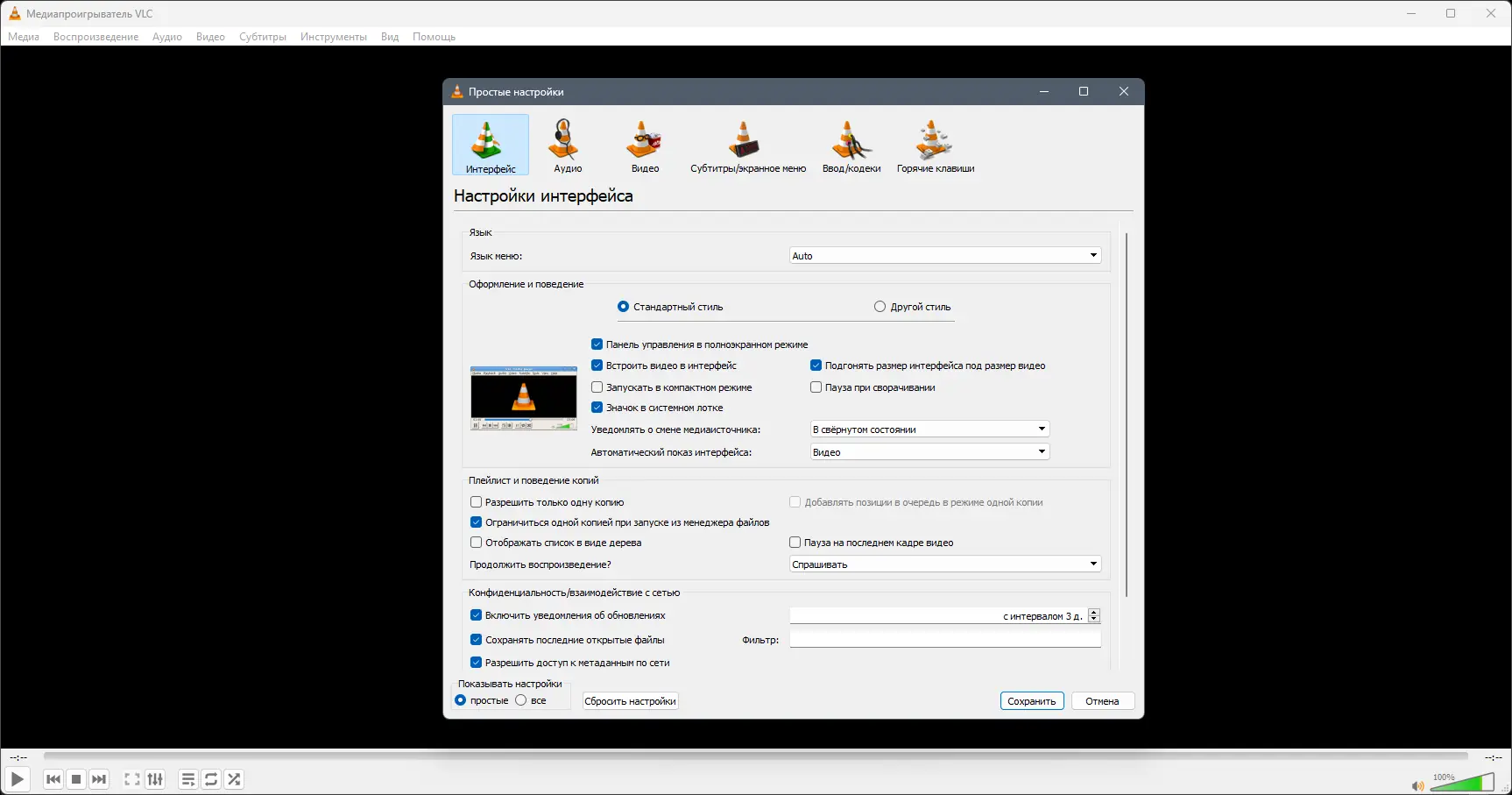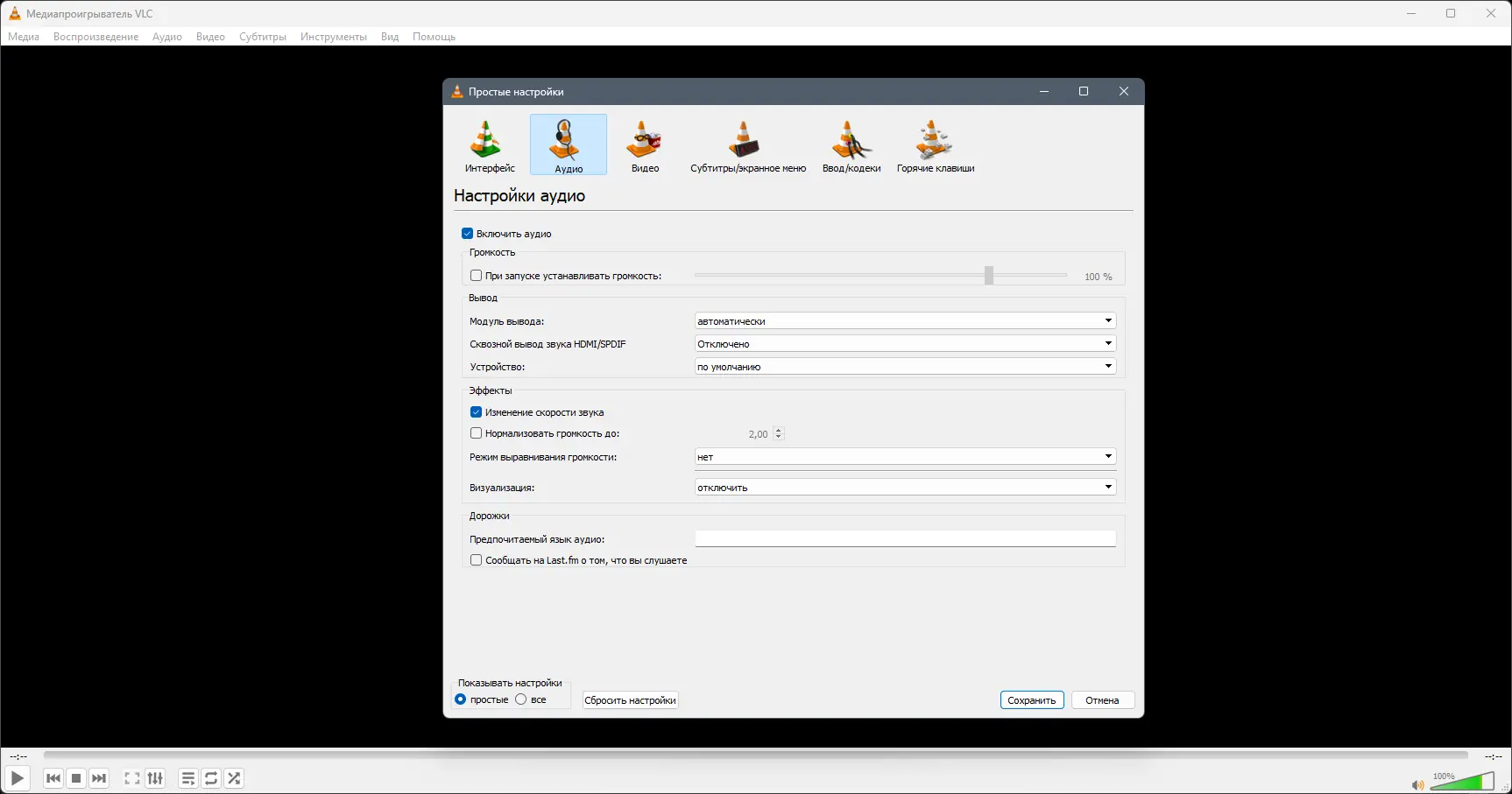 Использование VLC Media Player интуитивно понятно благодаря продуманному интерфейсу и логичной структуре меню. Для воспроизведения файла достаточно перетащить его в окно программы или открыть через проводник. Поддерживаются как одиночные файлы, так и целые папки, формируемые в плейлисты. Пользователь может регулировать громкость, скорость воспроизведения, применять видео- и аудиофильтры, настраивать субтитры и включать аппаратное ускорение. Доступна тонкая настройка параметров вывода, включая выбор аудиоустройства, управление аспект-рацио и коррекцию цвета. В меню «Инструменты» находятся функции конвертации, захвата и трансляции. Портативная версия позволяет запускать приложение с USB-носителя без установки в систему.
