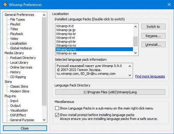 Winamp — легендарный аудиоплеер, известный своей стабильной работой, поддержкой множества форматов и гибкой настройкой интерфейса. Программа возвращает воспоминания о музыкальной культуре эпохи dial-up и цифровой революции, оставаясь при этом современным решением для прослушивания аудио и видео. Благодаря постоянным обновлениям, она совместима с новыми стандартами и операционными системами.