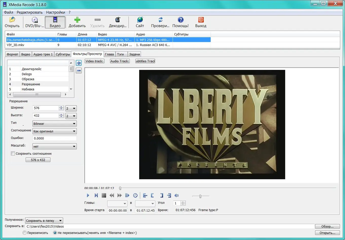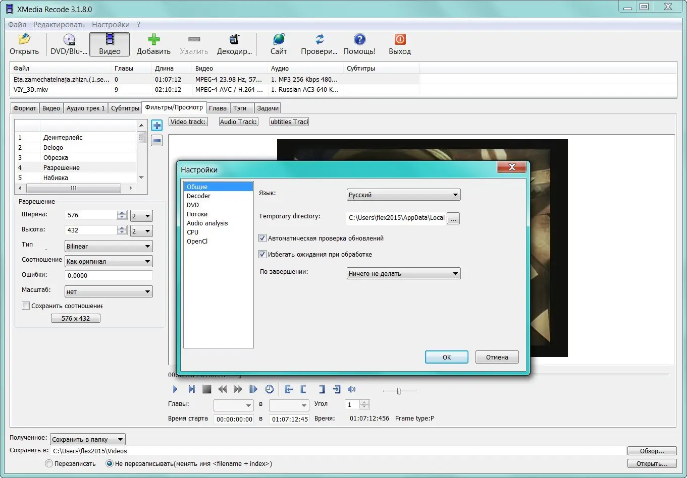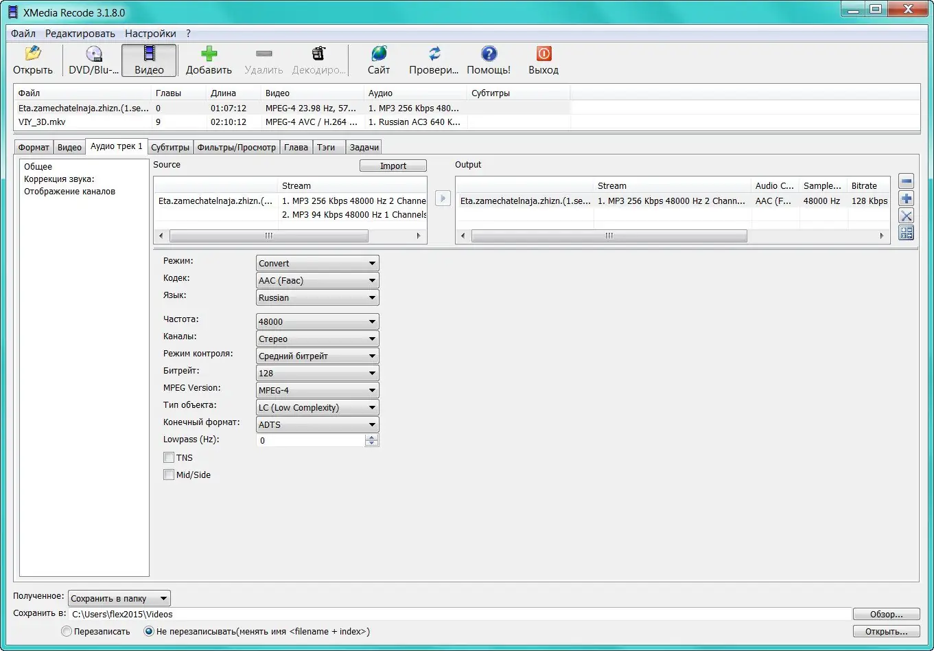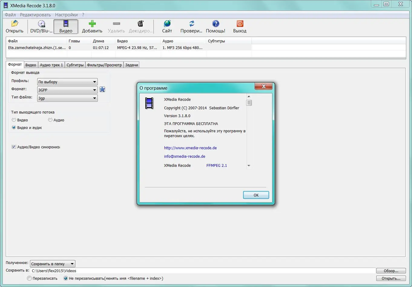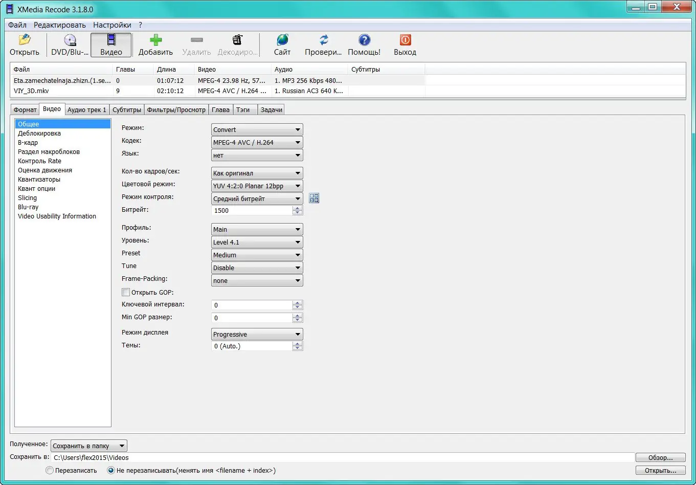 Работа с XMedia Recode
