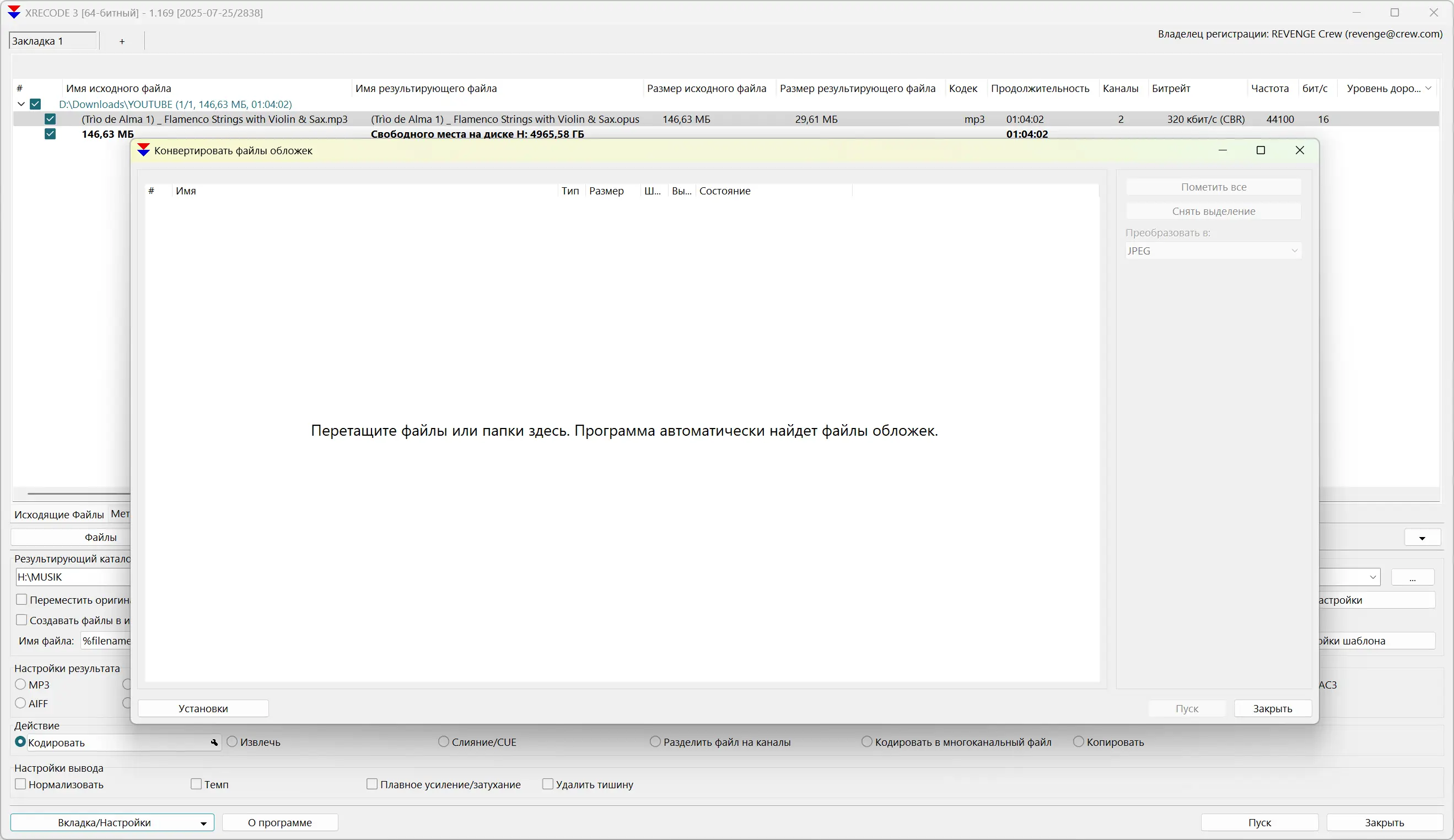 XRecode 3 — это мощный аудиоконвертер с интуитивным интерфейсом, поддерживающий широкий спектр форматов и позволяющий быстро преобразовывать звуковые файлы без потери качества. Программа поддерживает извлечение звука из видео, параллельную обработку, многопоточное кодирование и работу с метаданными, включая обложки альбомов.