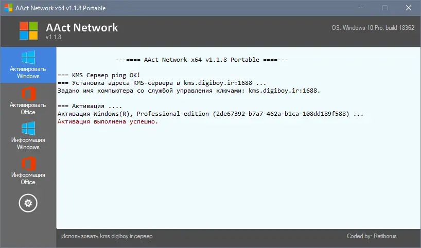 AAct Network — это KMS-активатор, ориентированный на версии Windows и Office с меткой VL, то есть Volume Licensing. Он предназначен для продления эмулированного срока лицензии на 180 дней, что соответствует стандартному поведению корпоративных ключей активации. Разработка использует внутренние системные механизмы через встроенные скрипты slmgr.vbs и ospp.vbs, минуя необходимость во внешних зависимостях. Архитектура приложения исключает использование временных файлов, что снижает риск обнаружения антивирусами. Программа не требует установки и может функционировать в режиме portable, что особенно актуально для системных администраторов и пользователей, предпочитающих автономные инструменты. Версия 1.2 2 portable by ratiborus стала одной из популярных сборок благодаря своей компактности и стабильности.