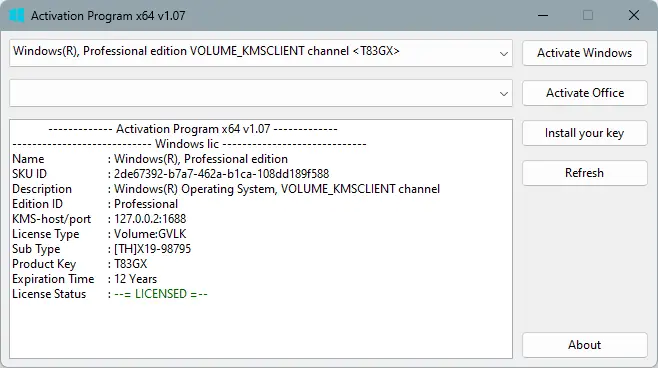 Activation Program — это утилита для автономного изменения статуса активации продуктов Microsoft. Она не взаимодействует с серверами лицензирования, а напрямую редактирует внутренние записи в доверенном хранилище операционной системы. Основная цель — эмулировать успешную активацию, используя проверенные локальные методы, что позволяет обойти необходимость в онлайн-проверке. Программа поддерживает широкий спектр редакций Windows, включая серверные и клиентские версии, а также специальные лицензии ESU для устаревших систем.