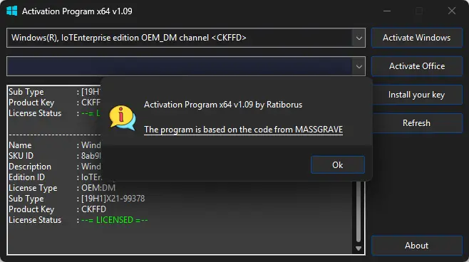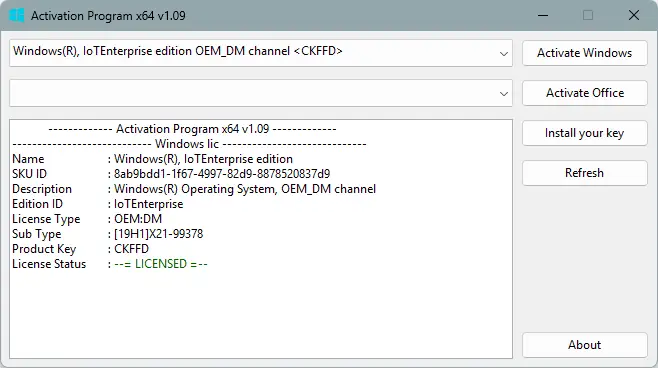 Activation Program — это утилита, разработанная для offline-изменения статуса лицензии в операционных системах на базе Windows. В основе её работы лежит манипуляция данными в защищённом хранилище лицензий, что позволяет обойти стандартные механизмы активации. Программа не взаимодействует с серверами Microsoft и не нарушает целостность системных файлов, выполняя изменения строго в рамках локального хранилища лицензий.