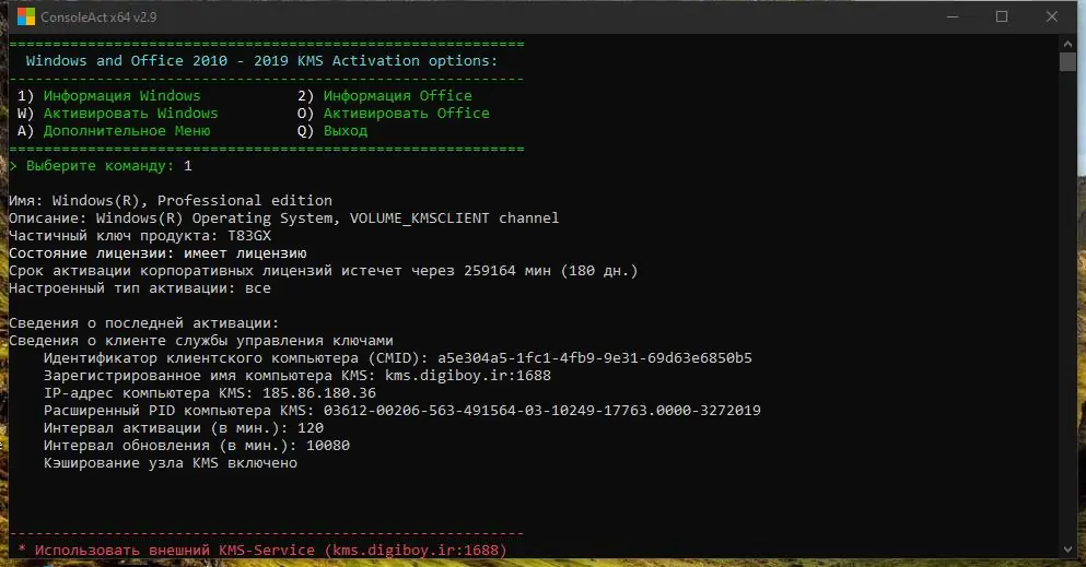 ConsoleAct представляет собой консольное приложение, разработанное автором Ratiborus для автоматизации процесса активации Windows и Microsoft Office. Утилита не требует сложных настроек и ориентирована на максимальную простоту использования. Она использует KMS-эмуляцию для имитации локального сервера активации, что позволяет обойти стандартные ограничения лицензирования в корпоративных и домашних системах.