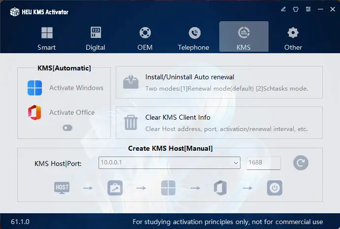 HEU KMS Activator представляет собой инструмент, разработанный для локальной активации продуктов Microsoft без необходимости подключения к сторонним серверам. Он поддерживает широкий диапазон операционных систем, от устаревших версий, таких как Windows XP и Vista, до актуальных — Windows 10 и 11. Также обеспечивается совместимость с различными редакциями Microsoft Office, включая Office 365 и новейшую версию 2024 года. Программа работает автономно, определяя текущее состояние лицензии и выбирая наиболее подходящий способ активации.