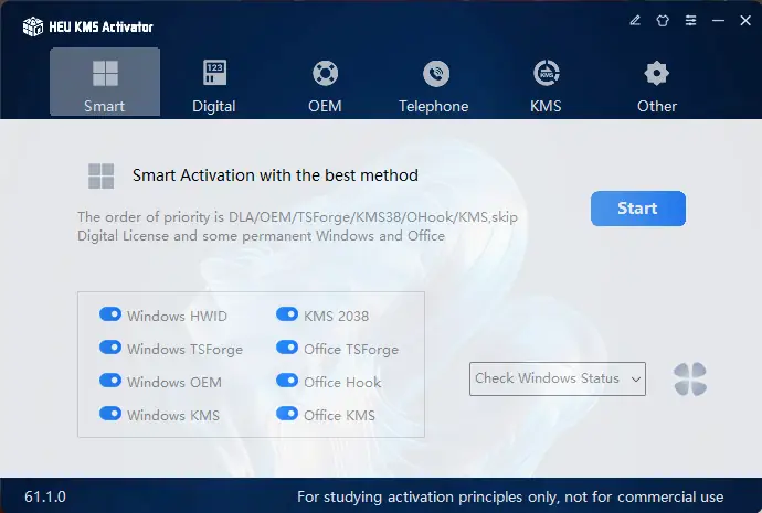 HEU KMS Activator — это удобное решение для активации операционной системы Windows и пакета Microsoft Office с поддержкой последних версий, включая Windows 11 и Office 2024. Программа обеспечивает быструю и стабильную активацию всего в один клик, автоматически выбирая оптимальный метод. Поддержка различных режимов, таких как цифровая лицензия, KMS38, OEM и классический KMS, делает её универсальным инструментом для пользователей с разными потребностями. Также включены вспомогательные функции для настройки и восстановления системы.
