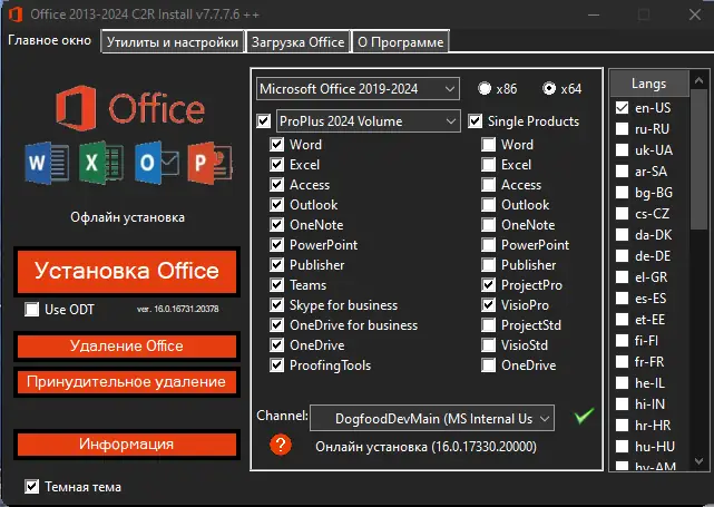 - Office 2013-2024 C2R Install позволяет устанавливать и настраивать пакеты Microsoft Office с автоматической активацией через Click-to-Run.