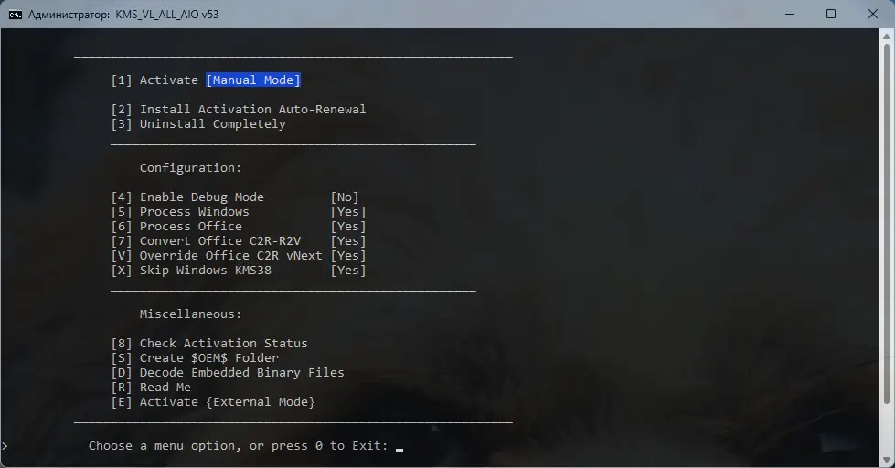 - Активация осуществляется через встроенный скриптовый движок, совместимый с KMS-механизмом Microsoft.