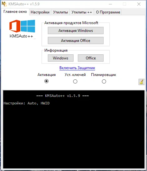 KMSAuto++ — это универсальный KMS-активатор, предназначенный для автоматической активации корпоративных версий операционных систем Windows и пакета Microsoft Office. Поддерживает широкий спектр редакций, включая Windows от Vista до 11 и Office 2010–2019, в том числе VL-сборки на базе Windows XP. Программа функционирует без необходимости вручную настраивать систему, обеспечивая стабильную работу через встроенный KMS-сервис и интеграцию с планировщиком задач.