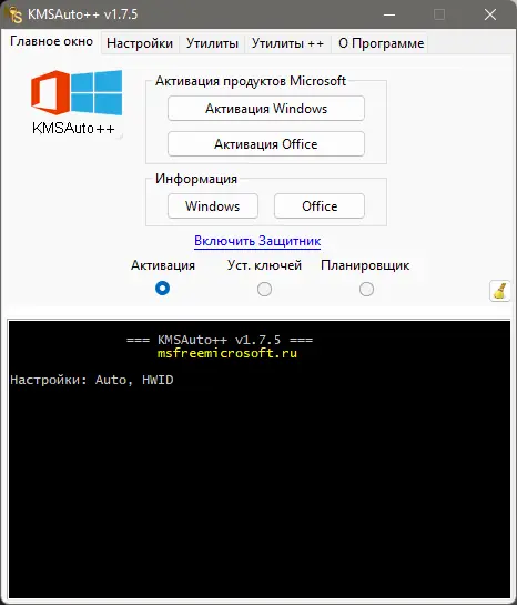 KMSAuto++ — это компактный и эффективный инструмент для автоматической активации операционных систем Windows версий VL и пакетов Microsoft Office. Программа поддерживает широкий спектр систем, включая Windows Vista, 7, 8, 8.1, 10, 11 и серверные редакции, а также Office 2010–2019. Она работает без необходимости постоянного присутствия в системе после настройки.