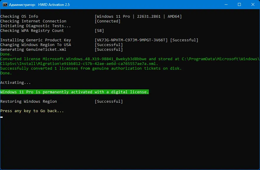 - Использование HWID-активации, имитирующей цифровую лицензию, привязанную к аппаратному обеспечению.
