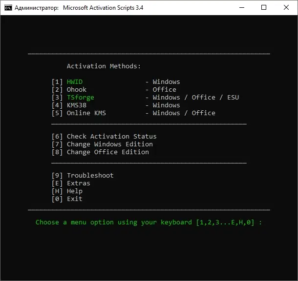 - Поддержка множества методов активации: HWID, Ohook, KMS38, OnlineKMS, TSforge
