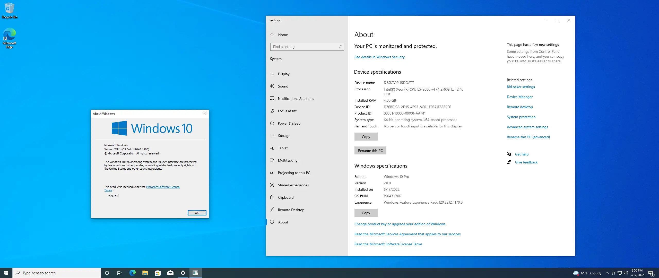 Windows 10 — операционная система от Microsoft, получившая широкое распространение благодаря гибкости, совместимости и регулярным обновлениям. Версия 21H1, вышедшая в мае 2021 года, стала одиннадцатым по счёту крупным обновлением платформы и ориентирована на стабильность, а не на кардинальные изменения интерфейса. Она включает в себя улучшенные механизмы безопасности, оптимизацию фоновых процессов и поддержку современных стандартов работы с устройствами. Обновление не требует полной переустановки системы и может быть применено к существующей версии. Сборка 19043.1706 содержит актуальные исправления на май 2022 года.