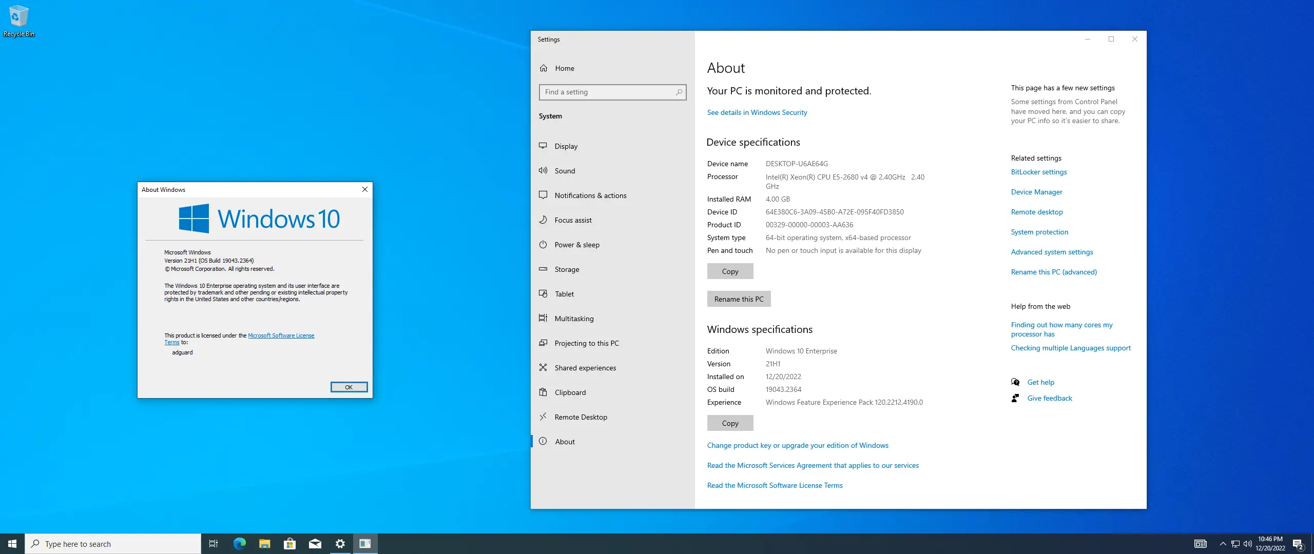 После установки Windows 10 21H1 пользователь получает доступ к привычному интерфейсу с меню «Пуск», панелью задач и центром уведомлений. Настройка системы осуществляется через раздел «Параметры», где можно изменить внешний вид, управление обновлениями, параметры безопасности и приватности. Для активации требуется ввод ключа продукта, который можно указать как во время установки, так и после — через раздел «Обновление и безопасность». Система поддерживает быстрый запуск, виртуальные рабочие столы, режимы энергосбережения и интеграцию с облачными сервисами Microsoft.