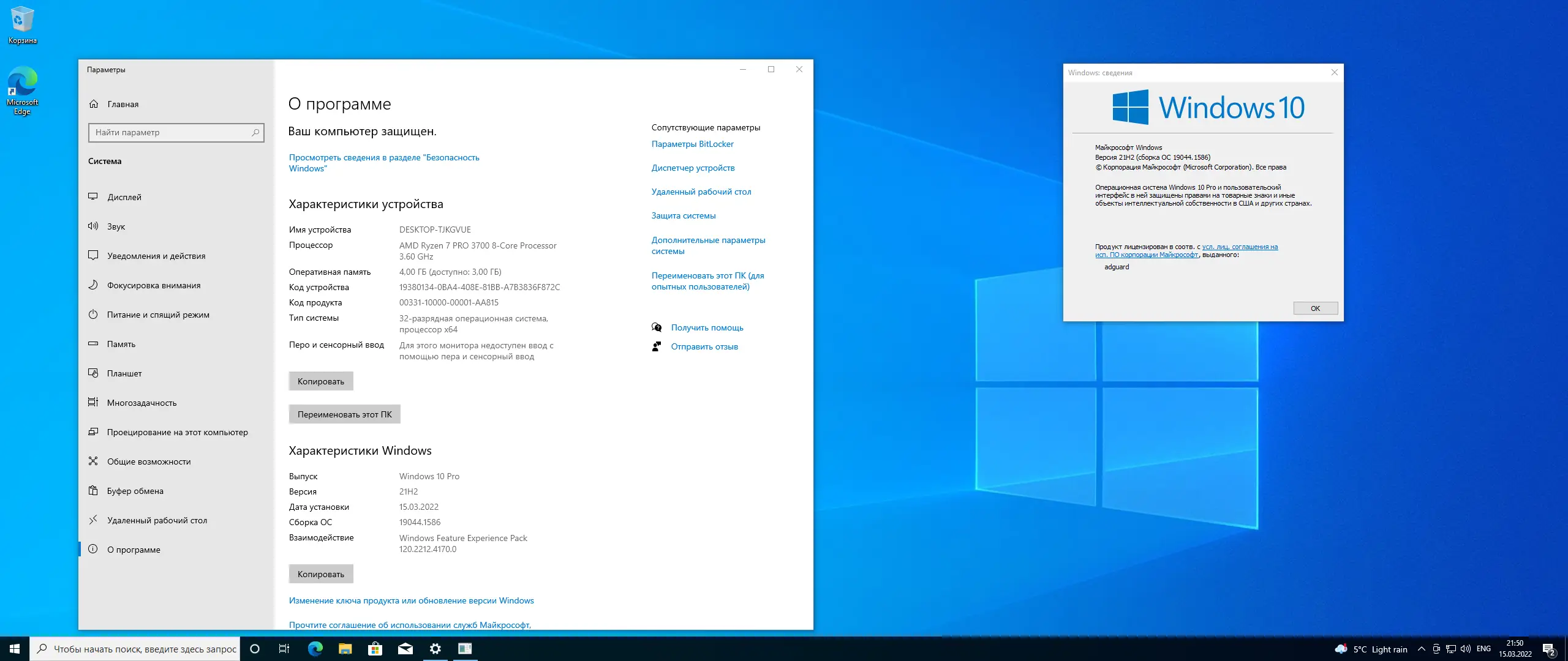 Операционная система Microsoft Windows 10 версии 21H2 представляет собой важное обновление, ориентированное как на домашних пользователей, так и на корпоративный сегмент. Сборка 19044.1586, выпущенная в марте 2022 года, включает все накопленные исправления с предыдущих обновлений и обеспечивает высокую совместимость с программным обеспечением и оборудованием. Архитектура x64 позволяет эффективно использовать ресурсы современных процессоров и оперативной памяти, обеспечивая быструю загрузку и отзывчивость системы.