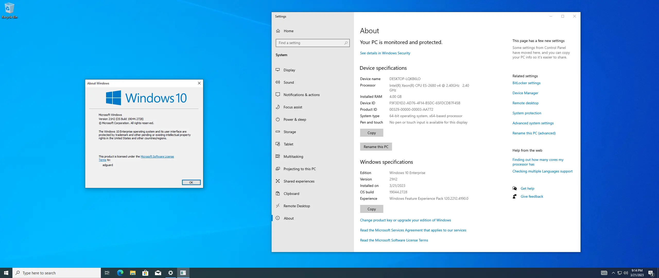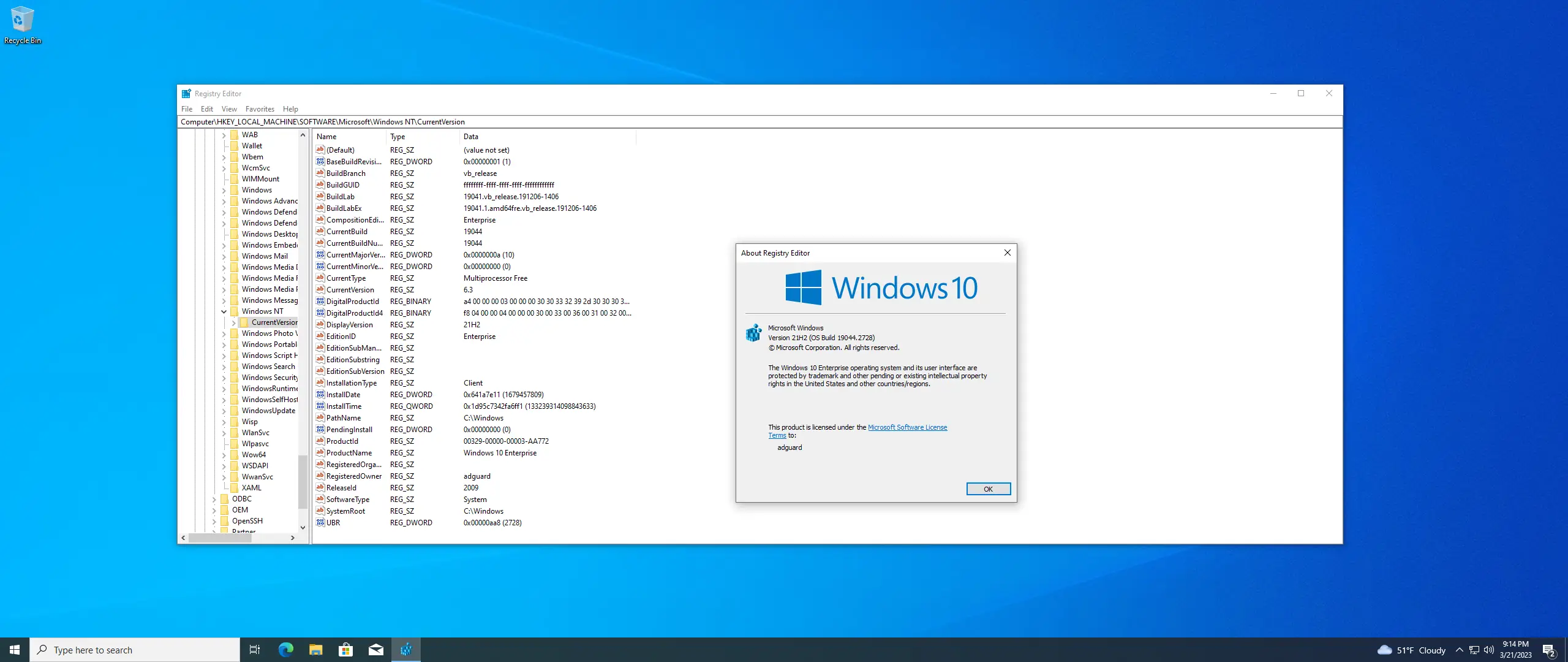 - Номер сборки — 10.0.19044, актуальная ревизия — 19044.2728 от марта 2023 года.