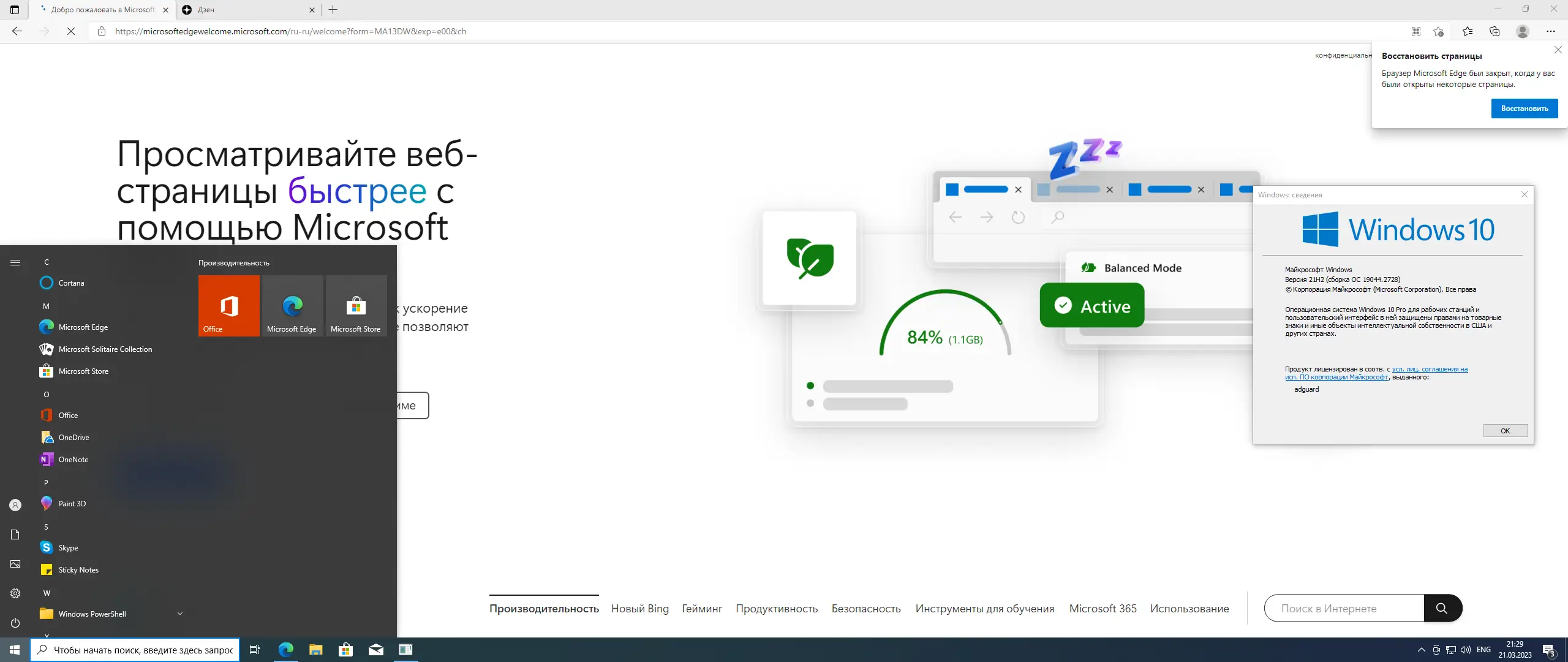 После установки система предлагает стандартные настройки, включая выбор региона, языка и параметров конфиденциальности. Через меню «Пуск» и панель задач можно быстро запускать приложения, управлять задачами и получать доступ к настройкам. Интеграция с облачными сервисами позволяет синхронизировать данные между устройствами, включая браузерные закладки, историю и параметры.