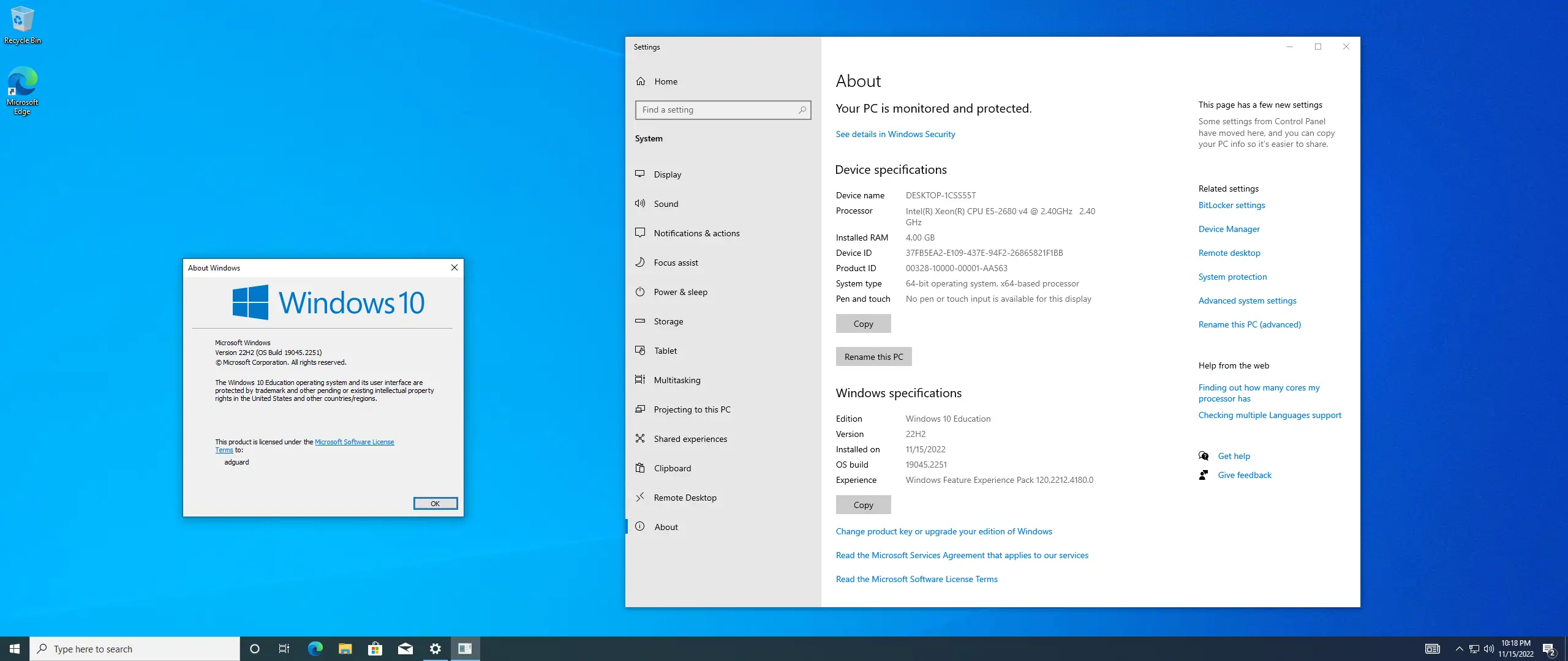 После установки Windows 10 22H2 пользователь получает доступ к привычному интерфейсу с меню «Пуск», панелью задач и центром уведомлений. Операционная система поддерживает работу с виртуальными рабочими столами, режимом планшета и функцией Snap Assist для удобного управления окнами. Настройки системы централизованы в приложении «Параметры», где можно управлять сетью, безопасностью, обновлениями и персонализацией. Для активации продукта предусмотрен ввод ключа на этапе установки или в любой момент после неё через раздел «Активация». Система автоматически проверяет наличие обновлений и предлагает установить их для поддержания безопасности и производительности.