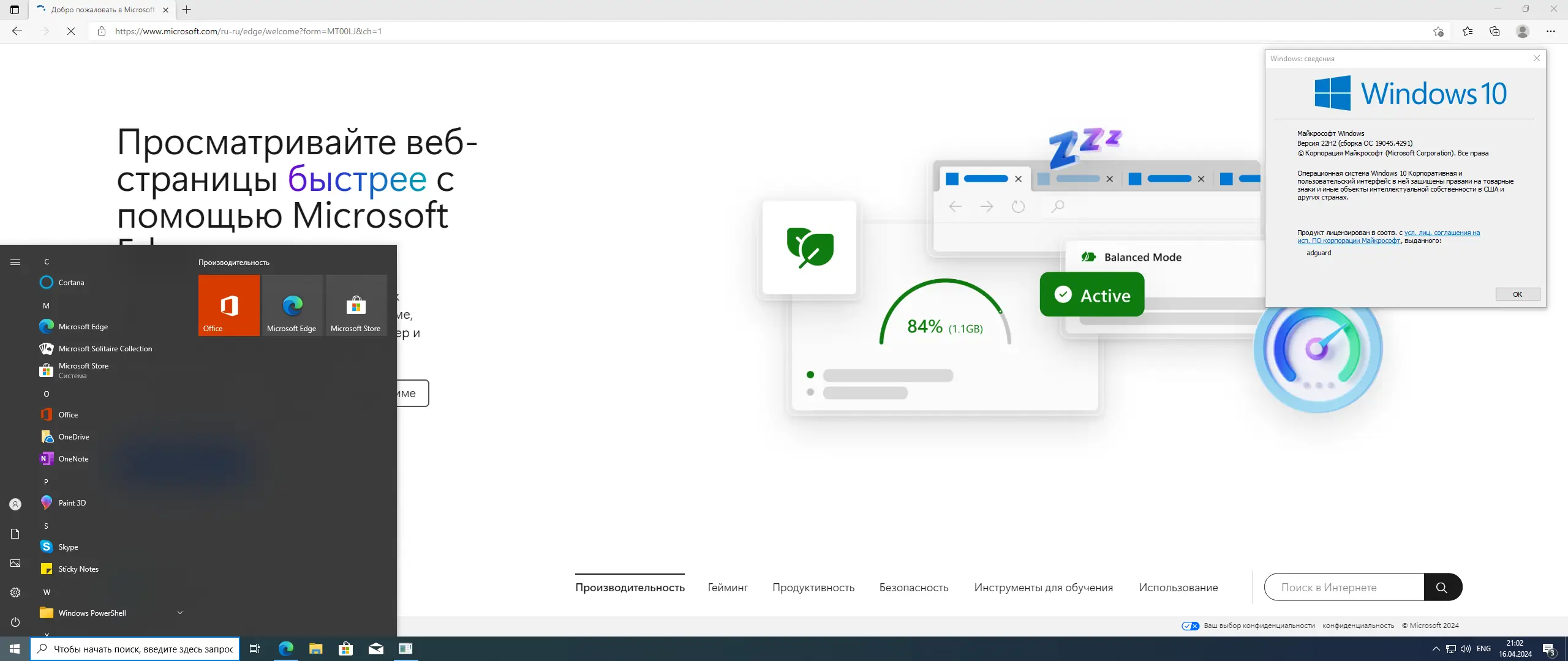 Windows 10 2022 Update (22H2) — это актуальное крупное обновление операционной системы, предназначенное для повышения производительности, безопасности и удобства пользователей. Сборка 19045.4291 включает в себя улучшенный интерфейс, расширенные возможности настройки и поддержку современных аппаратных решений.