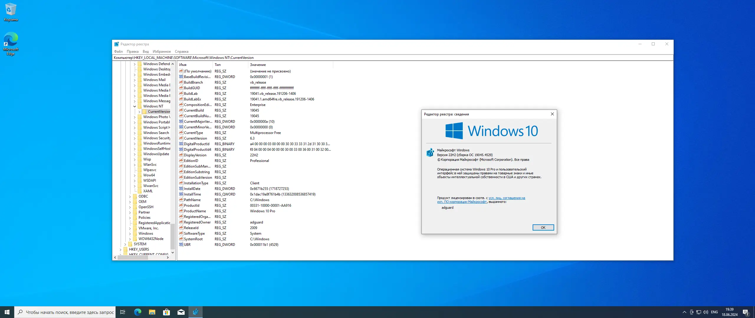 Windows 10 2022 Update (22H2) — это актуальное крупное обновление операционной системы от Microsoft, предлагающее улучшенную производительность, расширенные возможности безопасности и обновлённый пользовательский интерфейс. Сборка 19045 включает в себя все накопительные обновления по июнь 2024 года и доступна в двух версиях — business_edition и consumer_edition.