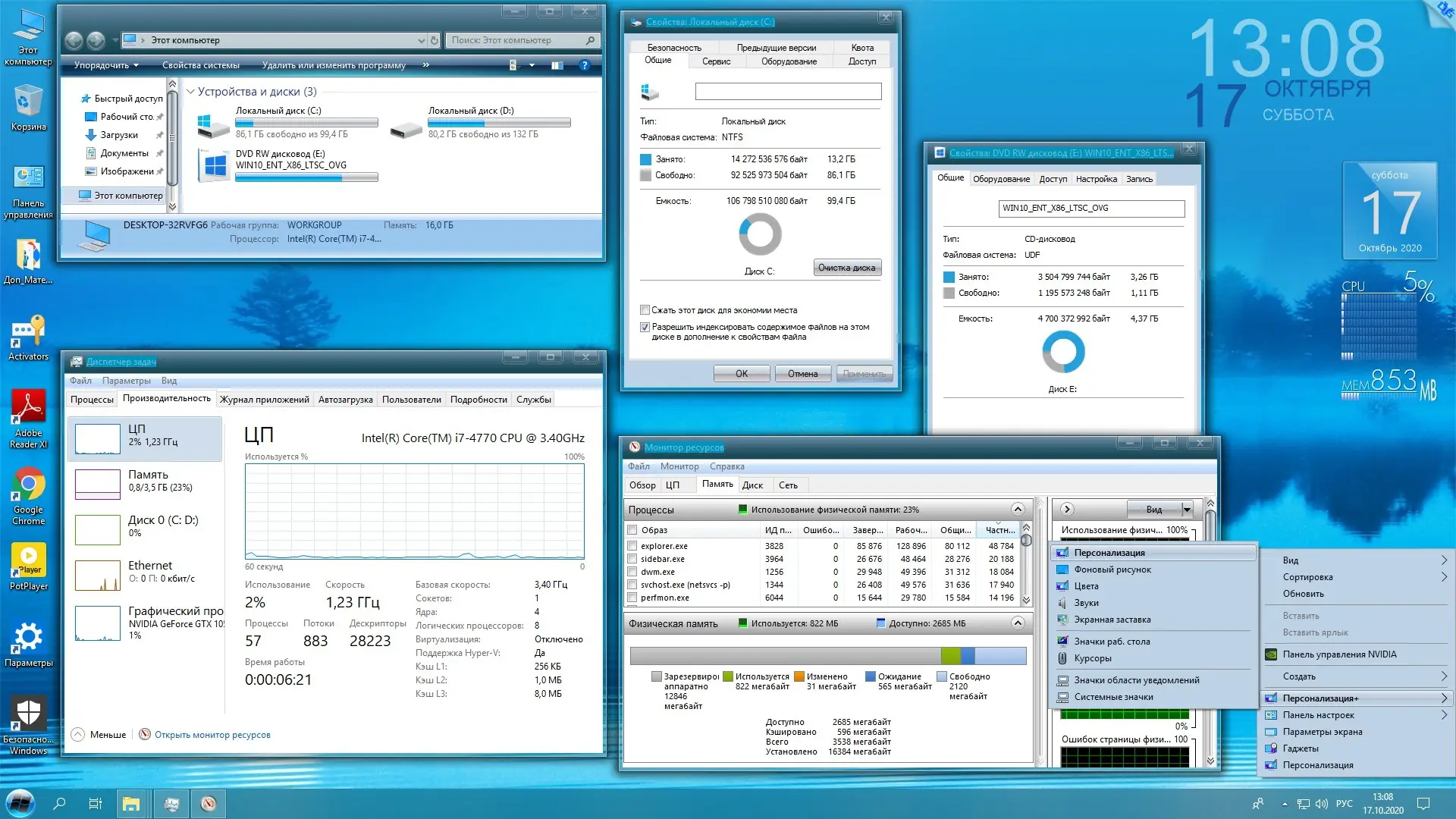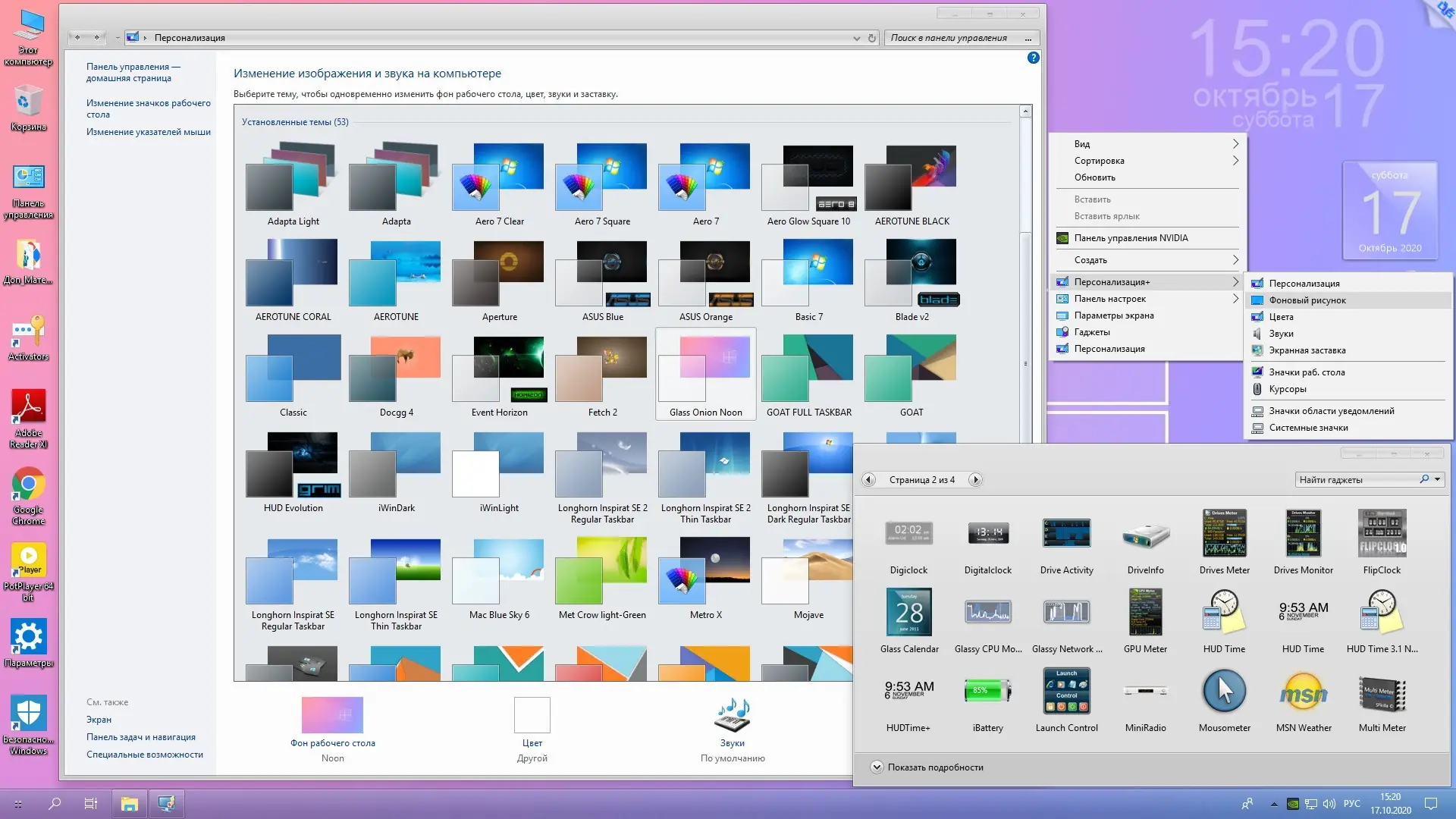 - Установлены удобные утилиты: StartIsBack++ для классического меню Пуск, 8GadgetPack для гаджетов, UltraUXThemePatcher для сторонних тем