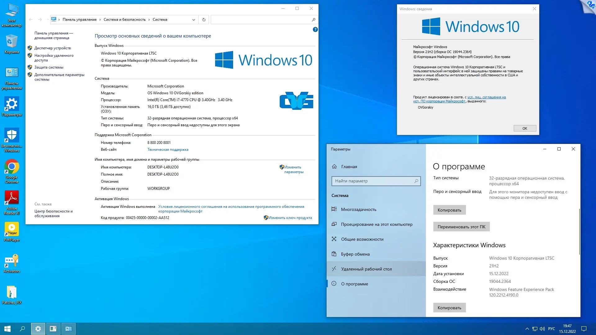 Сборка Microsoft Windows 10 Enterprise LTSC на основе официальных образов с интеграцией обновлений, необходимых программ и элементов персонализации. Включает Office 2016, StartIsBack++, темы, гаджеты и дополнительные компоненты. Подходит для пользователей, ценящих стабильность, минимализм и контроль над системой. Установка стандартная, активация автоматическая.