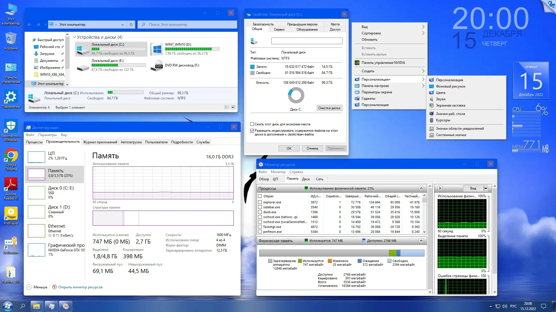 После установки система готова к использованию: все необходимые драйверы, библиотеки и приложения уже интегрированы. Пользователь может сразу приступить к настройке внешнего вида через StartIsBack++ и UltraUXThemePatcher, выбрать тему оформления, установить гаджеты и настроить поведение проводника с помощью OldNewExplorer. Для просмотра PDF используется Adobe Reader XI, для архивов — WinRAR, а воспроизведение видео и аудио передано Daum PotPlayer. Все изменения в системе можно вносить вручную, а дополнительные материалы, включая активаторы и утилиты, доступны на системном диске C: и рабочем столе. Браузеры по умолчанию содержат ссылку на сайт автора, которую легко удалить через настройки.