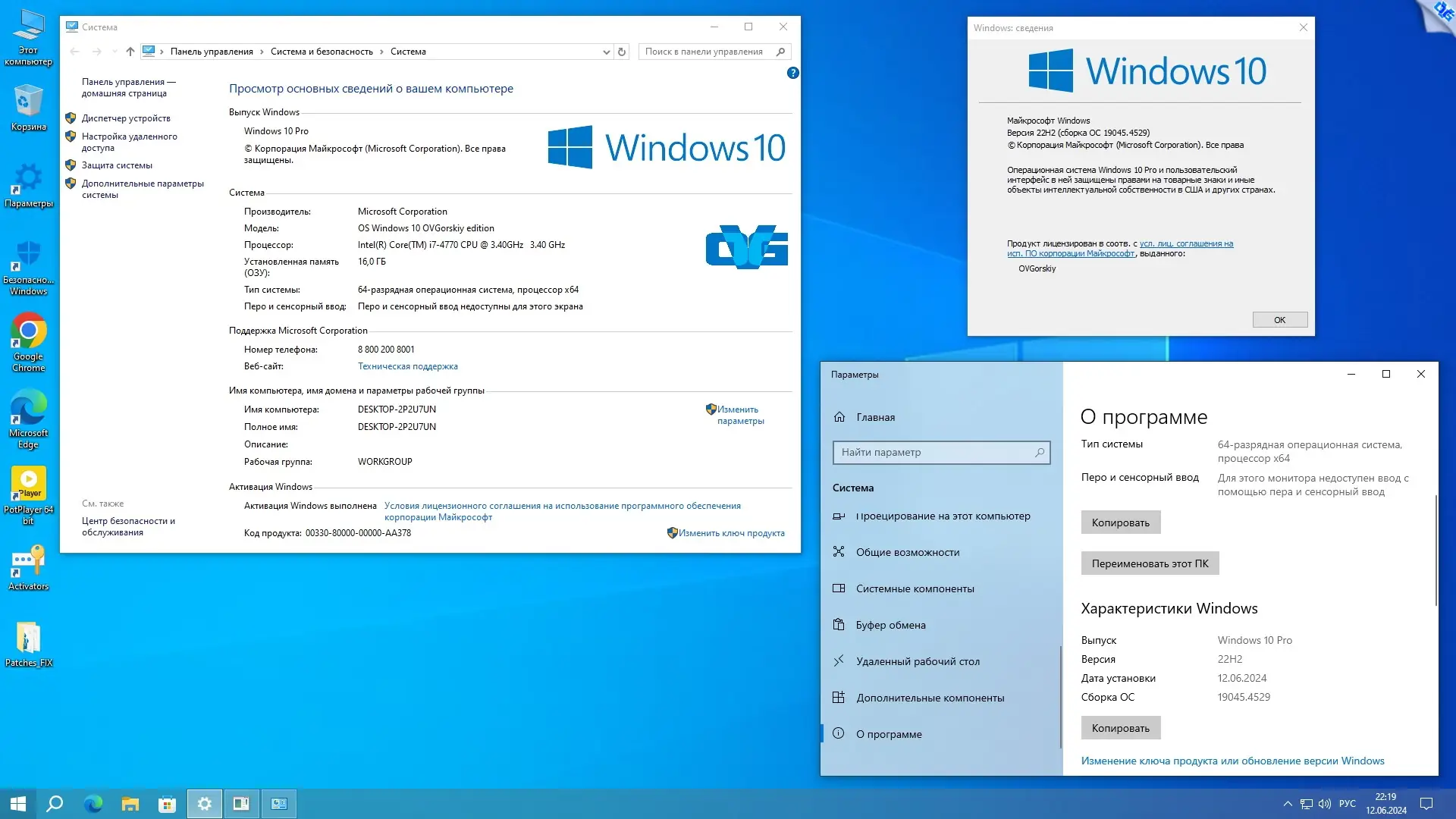 Данная сборка представляет собой модифицированную версию операционной системы Windows 10 22H2, разработанную с акцентом на производительность, приватность и удобство. Основа — официальный образ от Microsoft, дополненный актуальными обновлениями и полезными компонентами. Сборка не использует сторонние инструменты, все изменения внесены легальными средствами, такими как DISM и Windows ADK, что гарантирует стабильность и прозрачность.