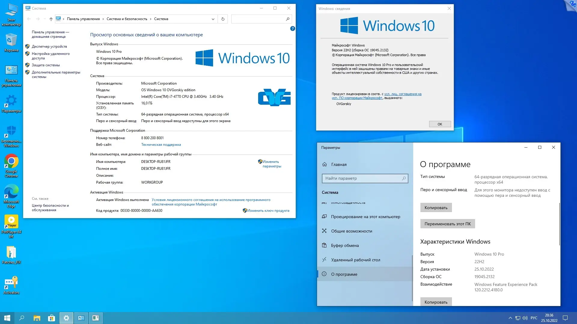 - Предустановленные приложения: Google Chrome, Word, Excel, Outlook, WinRAR, PotPlayer