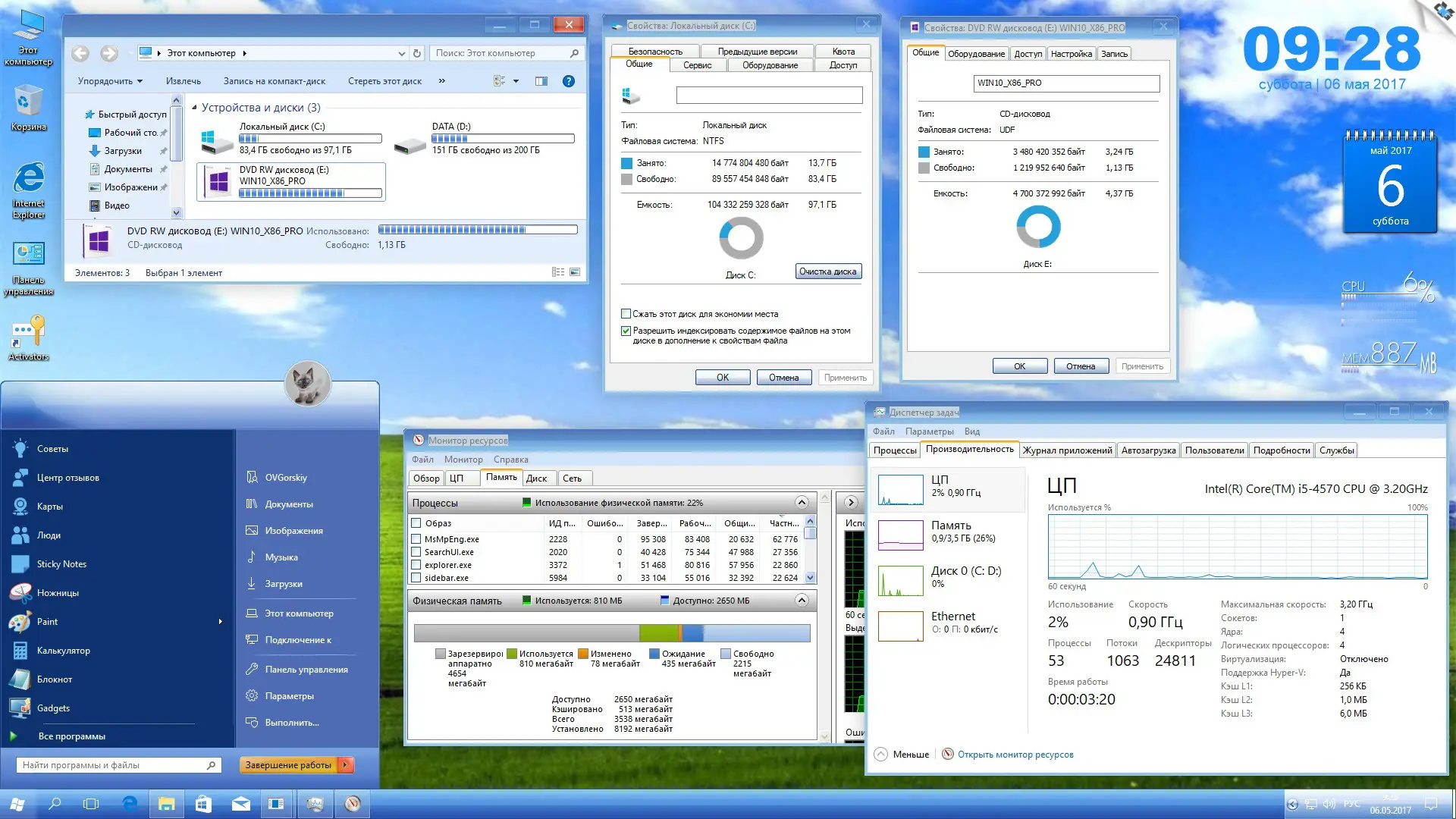 Сборка Microsoft Windows 10 Pro основана на официальных образах от Microsoft с интеграцией дополнительных компонентов для удобства настройки и персонализации. Включает обновления по май 2017 года, темы, гаджеты, патчи для стороннего оформления и стандартные системные улучшения. Установка производится вручную с флешки или DVD, поддерживается как UEFI, так и Legacy режимы. Система поставляется без активации, но содержит набор инструментов для KMS-активации на 180 дней с возможностью автоматического продления. Подходит для пользователей, желающих получить стабильную и гибко настраиваемую версию Windows 10 с привычным интерфейсом и расширенными возможностями персонализации.