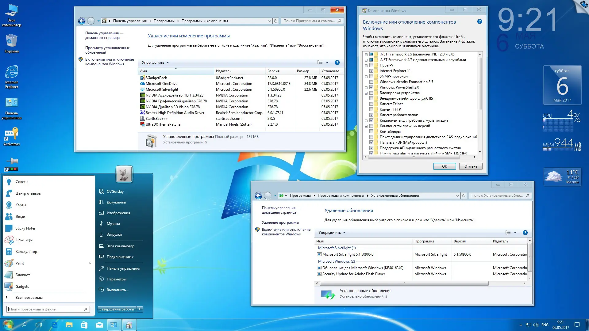 После установки система готова к использованию, но рекомендуется выполнить ряд действий для оптимальной настройки. Первоначально следует перезагрузить компьютер, чтобы все изменения вступили в силу. Затем можно перейти в папку «Bonus» на системном диске C: и запустить OldNewExplorer для корректного отображения сторонних тем. Программа StartIsBack++ позволяет настроить вид меню «Пуск» — можно выбрать стиль, размер, поведение и язык. Гаджеты устанавливаются через 8GadgetPack, после чего становятся доступны на рабочем столе. Для изменения внешнего вида системы рекомендуется зайти в «Персонализацию» и выбрать одну из предустановленных тем или изображение из папки «Wallpaper». Пользовательские аватарки находятся в папке «Avatars». При необходимости можно отключить или настроить обновления через Windows Update MiniTool.