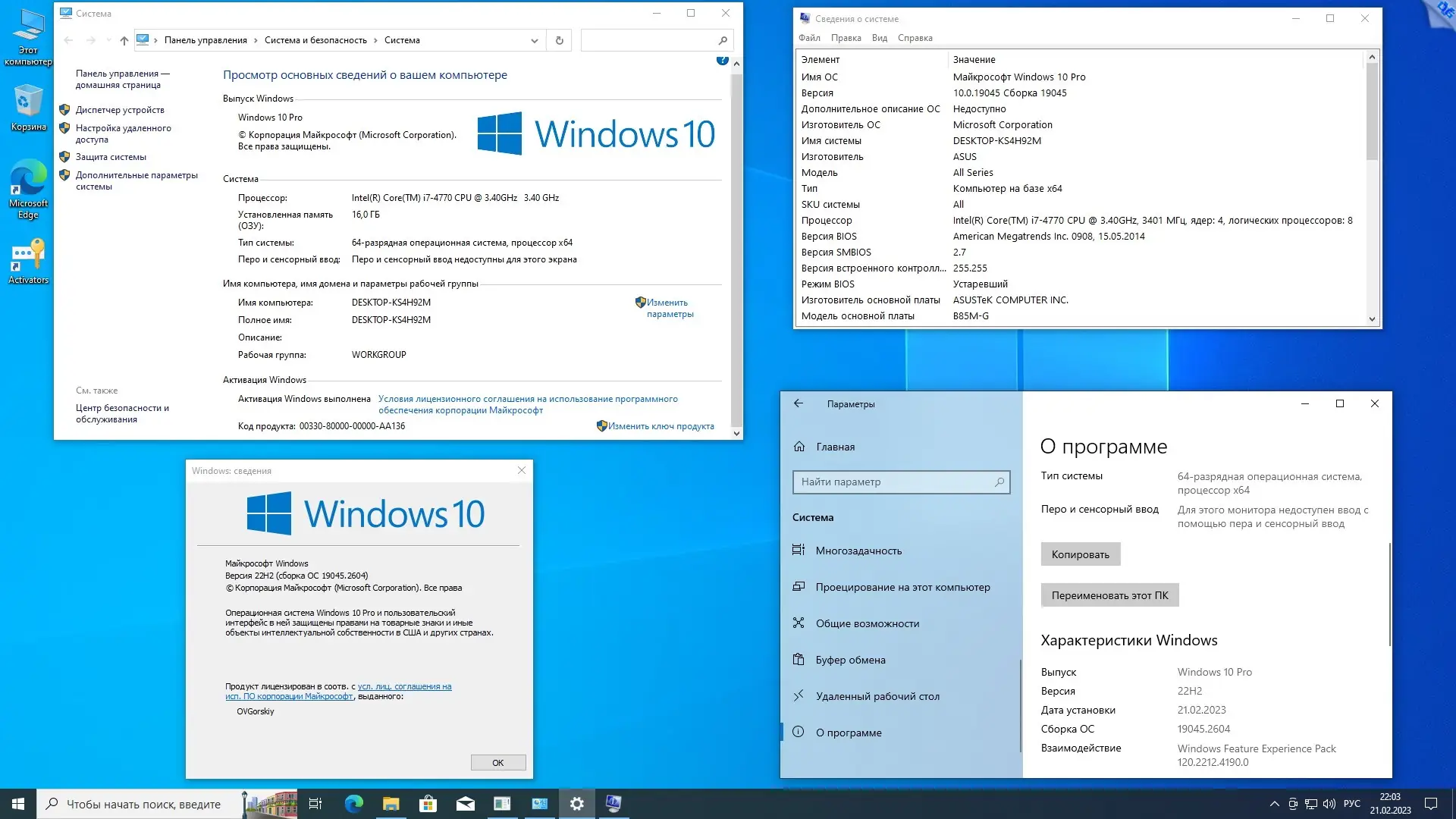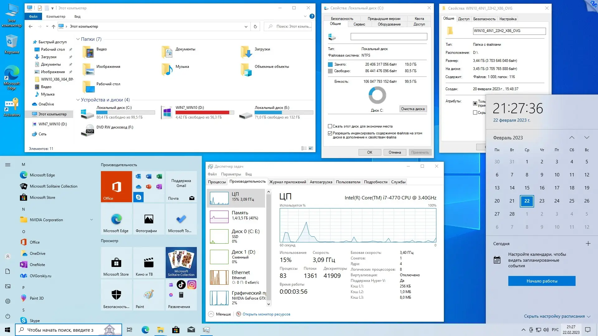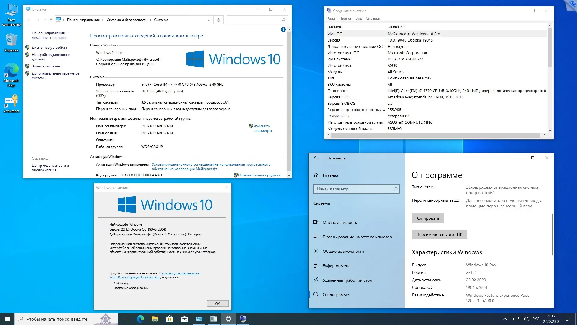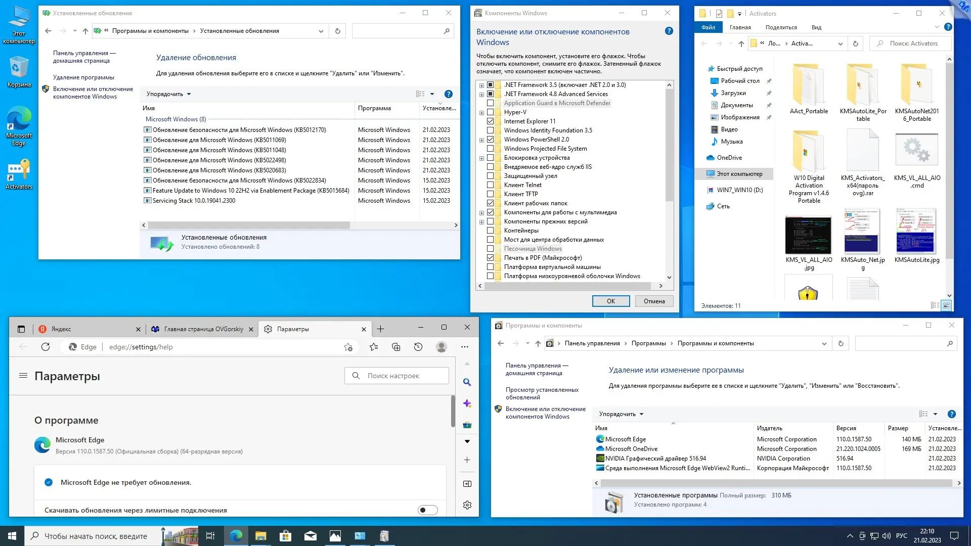 Данный релиз представляет собой сборку официальных образов операционной системы Windows 10 22H2, подготовленных на базе материалов MSDN с использованием стандартных инструментов Microsoft ADK, включая DISM. Сборка сохраняет оригинальную структуру и поведение системы, не внося лишних изменений, что делает её максимально приближённой к лицензионному дистрибутиву. Включены 32- и 64-битные версии редакций Home, Home Single Language, Professional и Enterprise, объединённые в два мультиредакционных образа. Все компоненты обновлены по 15 февраля 2023 года, включая накопительные патчи безопасности и функциональные улучшения. Интеграция .Net Framework 4.8.1 и включение 3.5 версии обеспечивают совместимость с широким спектром программного обеспечения, включая legacy-приложения. Браузер Microsoft Edge обновлён до версии 110.0.1587.50 на платформе Chromium, что гарантирует современный веб-доступ и высокую производительность.