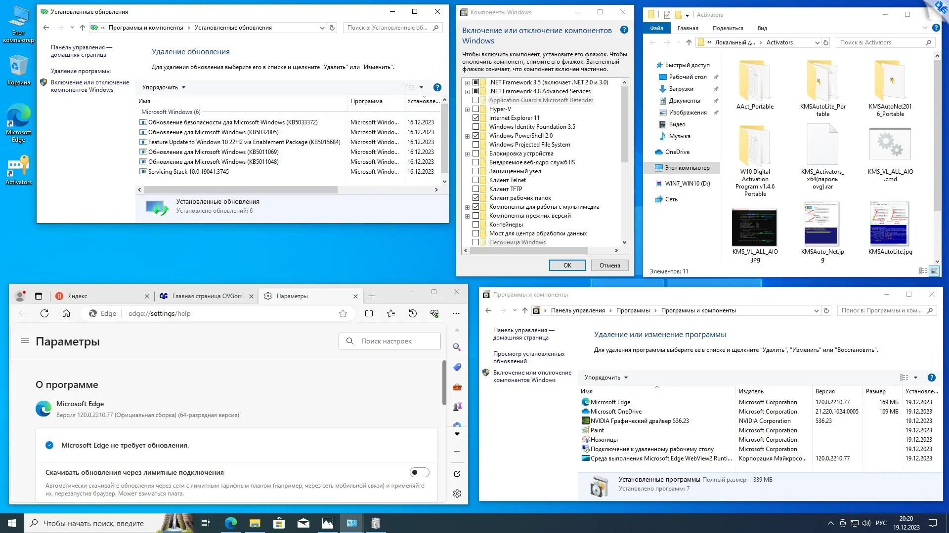 - Обновлён браузер Microsoft Edge до версии 120.0.2210.77 на базе движка Chromium, обеспечивающей высокую скорость и совместимость с современными сайтами.