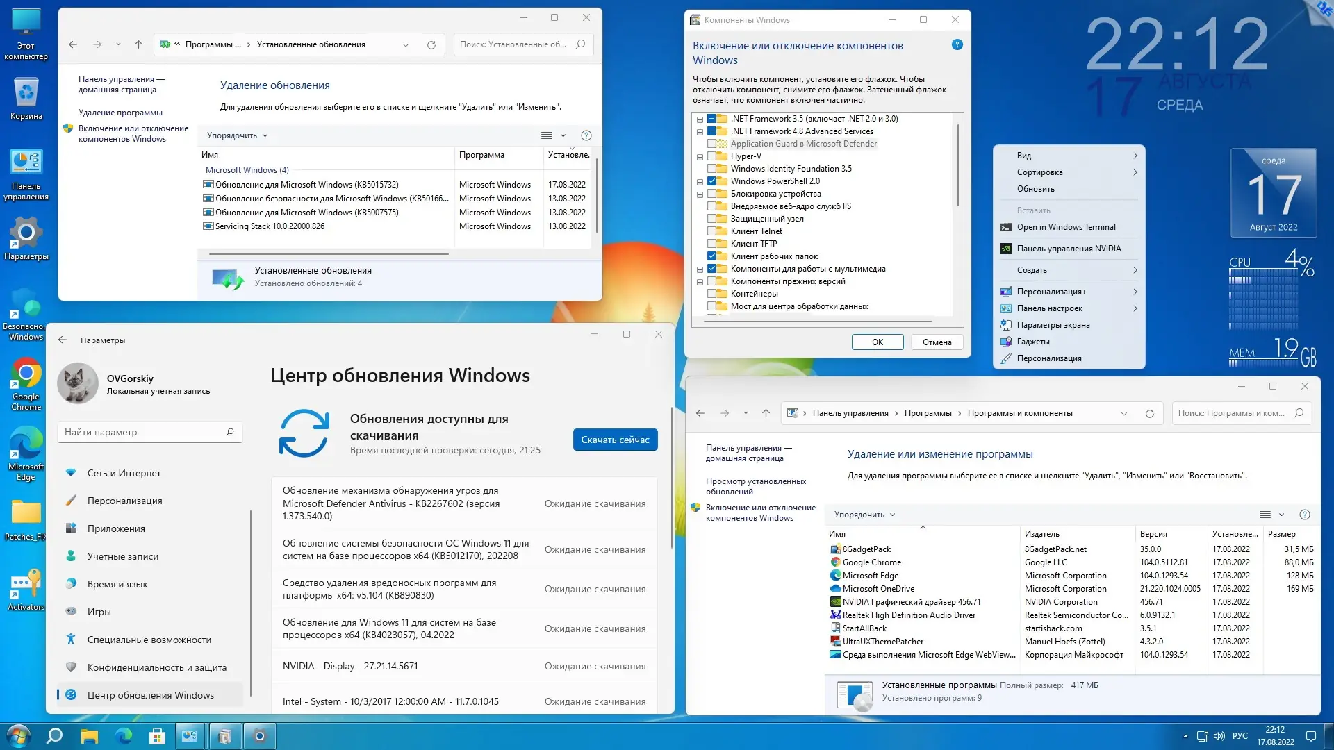 - Добавлены утилиты StartAllBack, UltraUXThemePatcher и 8GadgetPack для возврата классического интерфейса и расширения возможностей оформления.