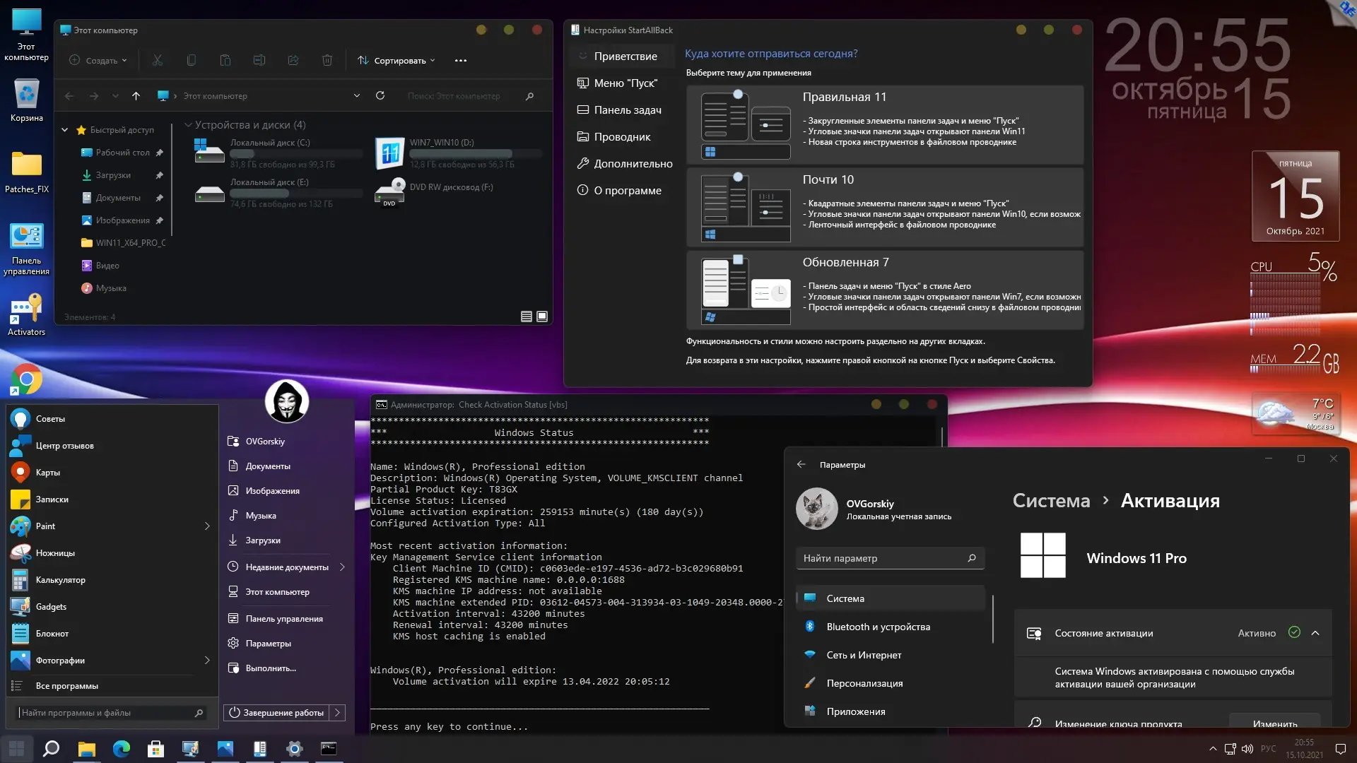 Сборка Windows 11 Pro VL x64 на русском языке с интеграцией дополнительных компонентов и обходом системных требований. Установка стандартная, с возможностью настройки под стиль пользователя. Включены обновления, темы, гаджеты, активаторы и удобные утилиты для персонализации. Совместима с оборудованием, не поддерживаемым официально.