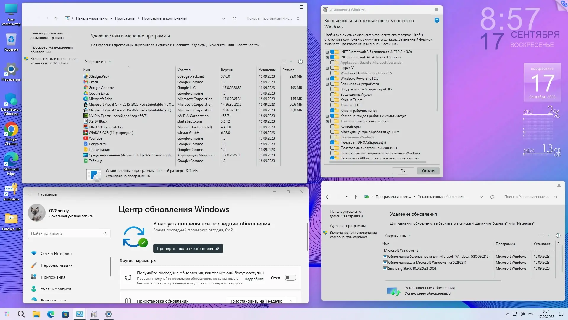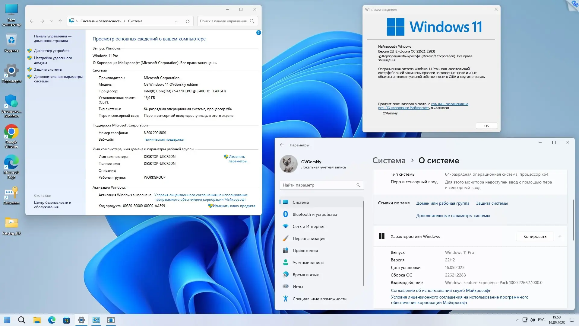- Операционная система основана на официальном образе Windows 11 22H2 с интеграцией всех накопительных обновлений по сентябрь 2023 года.