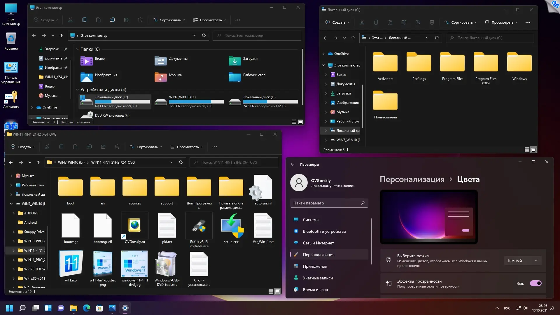 Использование образа не отличается от стандартной установки Windows. После записи на флешку с помощью Rufus или аналогичной утилиты, необходимо загрузиться с носителя и следовать инструкциям установщика. На этапе выбора редакции пользователь указывает, какую версию системы хочет установить. При необходимости можно использовать ключ из файла «Ключи установки.txt» или пропустить ввод ключа. После завершения установки система может активироваться автоматически, если ранее на этом устройстве была лицензионная Windows 10, или вручную с помощью встроенного активатора. Рекомендуется временно отключить антивирус и защитник Windows при создании загрузочного носителя, чтобы избежать ложного срабатывания. После установки доступна персонализация через встроенные средства: выбор темы, цвета, фона, прозрачности интерфейса и других параметров оформления.