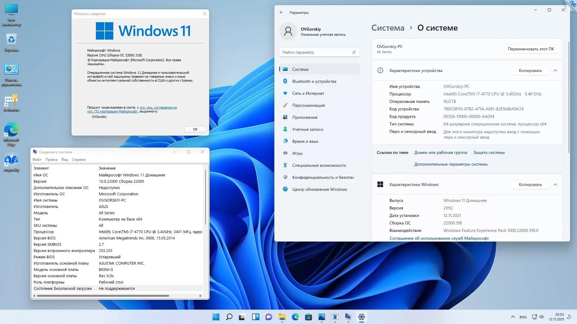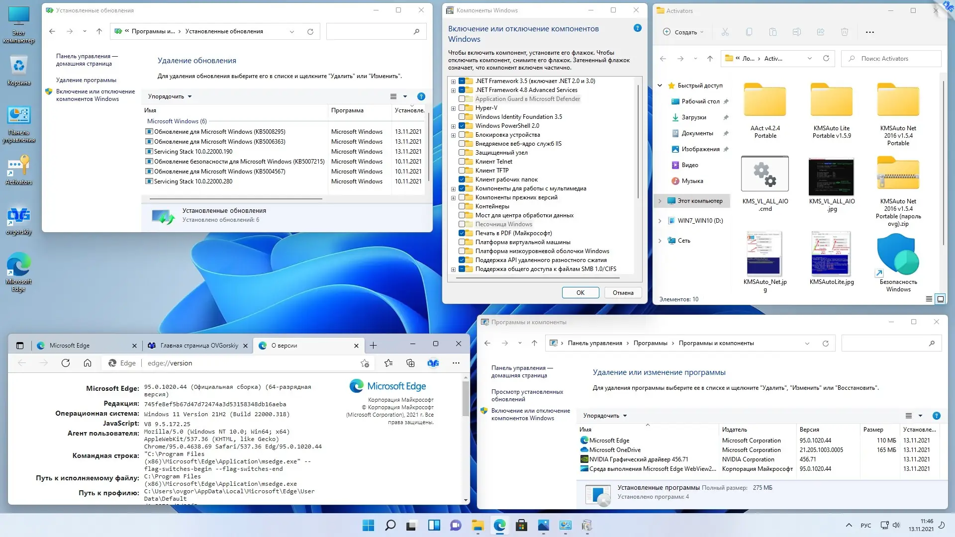 - Сборка включает только официальные компоненты Microsoft и необходимые системные обновления до 10 ноября 2021 года