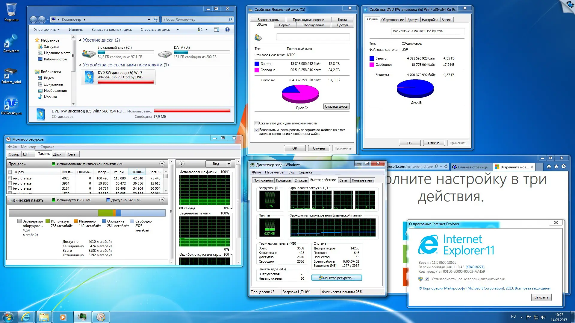 Оригинальные русские образы Windows 7 SP1 разных редакций и разрядностей на одном DVD. Сборка включает 9 версий ОС, включая Starter, Home Basic, Home Premium, Professional и Ultimate как для x86, так и для x64 систем. Установка производится вручную с выбором нужной редакции, содержит интегрированные обновления по май 2017 года, Internet Explorer 11, .NET Framework 4.7, Visual C++, Java и драйверы USB 3.0. Подходит для чистой установки с флешки или DVD, поддерживает установку на GPT-диски через UEFI. Максимум необходимого, ничего лишнего.