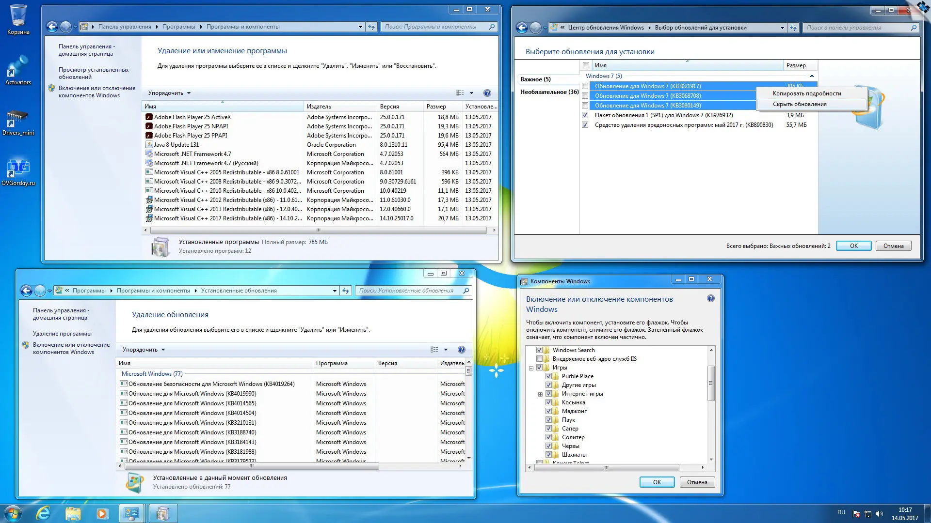 - Присутствуют стандартные компоненты: .NET Framework 4.7, Visual C++ 2005–2017, Java, Flash Player