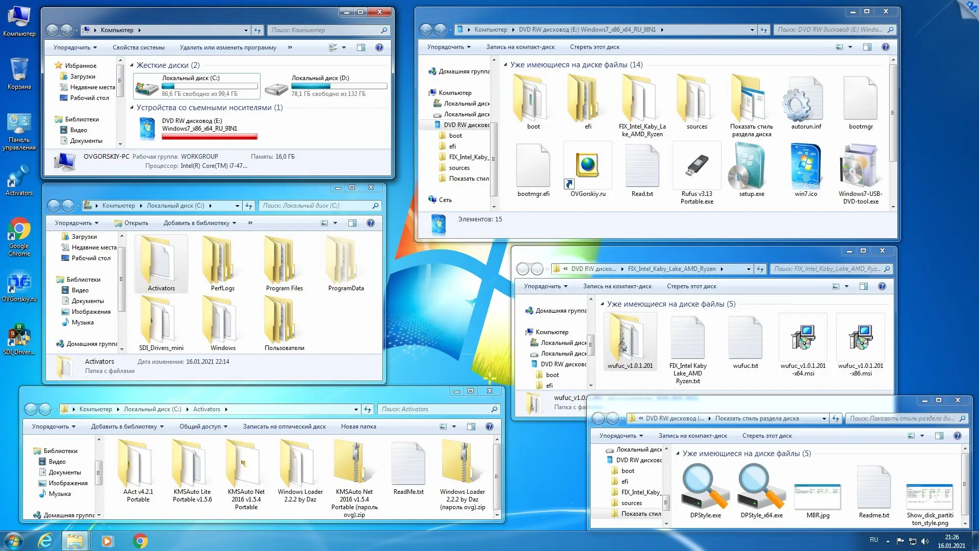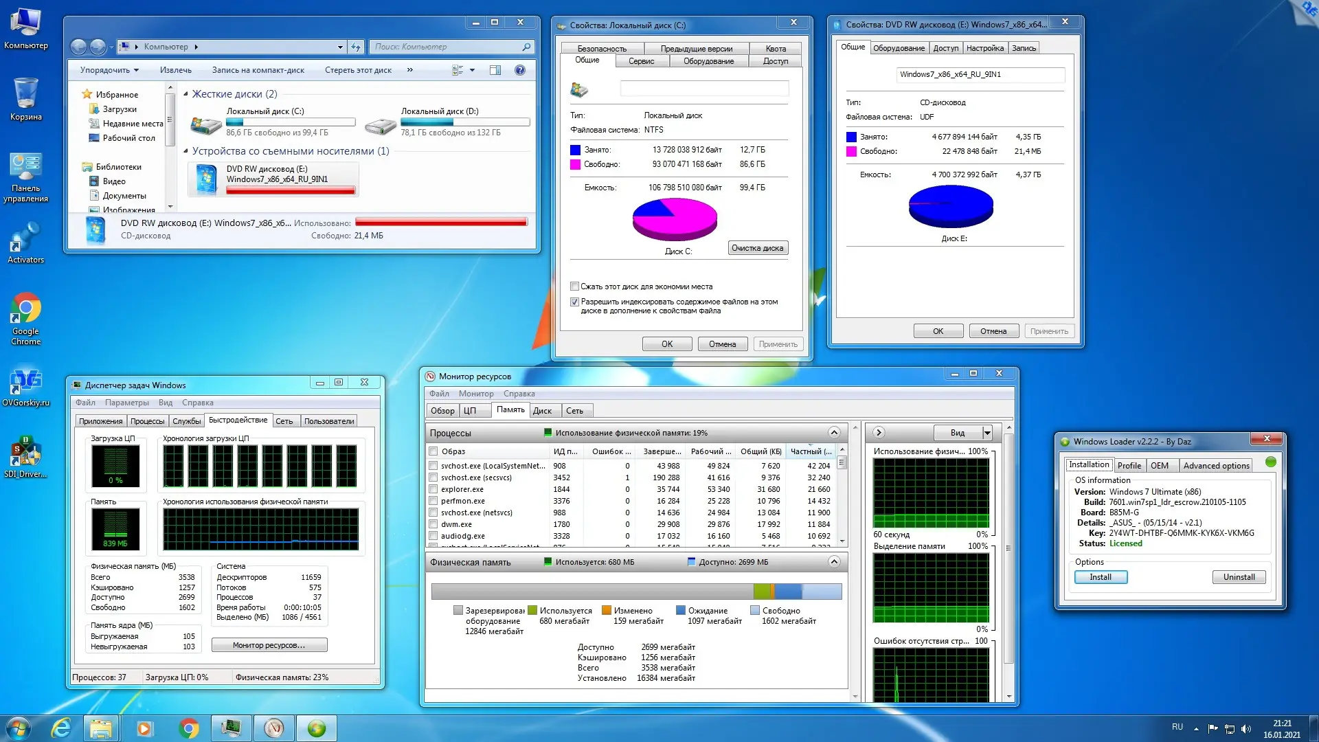Данный образ операционной системы Windows 7 разработан на основе официальных дистрибутивов от Microsoft MSDN и включает в себя девять редакций: от Starter до Ultimate, как в 32-битном, так и в 64-битном исполнении. Все версии объединены в один установочный носитель с использованием стандартных инструментов Microsoft AIK, что обеспечивает высокую совместимость и стабильность. Установка осуществляется вручную с выбором нужной редакции, разрядности и параметров конфигурации. В образ интегрированы важные и рекомендуемые обновления по состоянию на 12 января 2021 года, включая накопительный пакет KB3125574, а также Internet Explorer 11 на русском языке и поддержка USB3 и NVMe устройств.