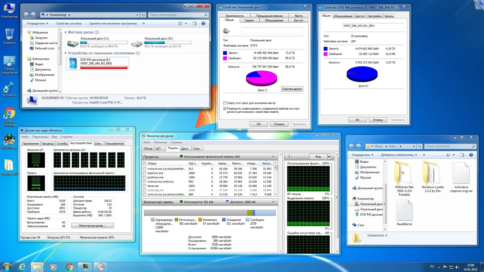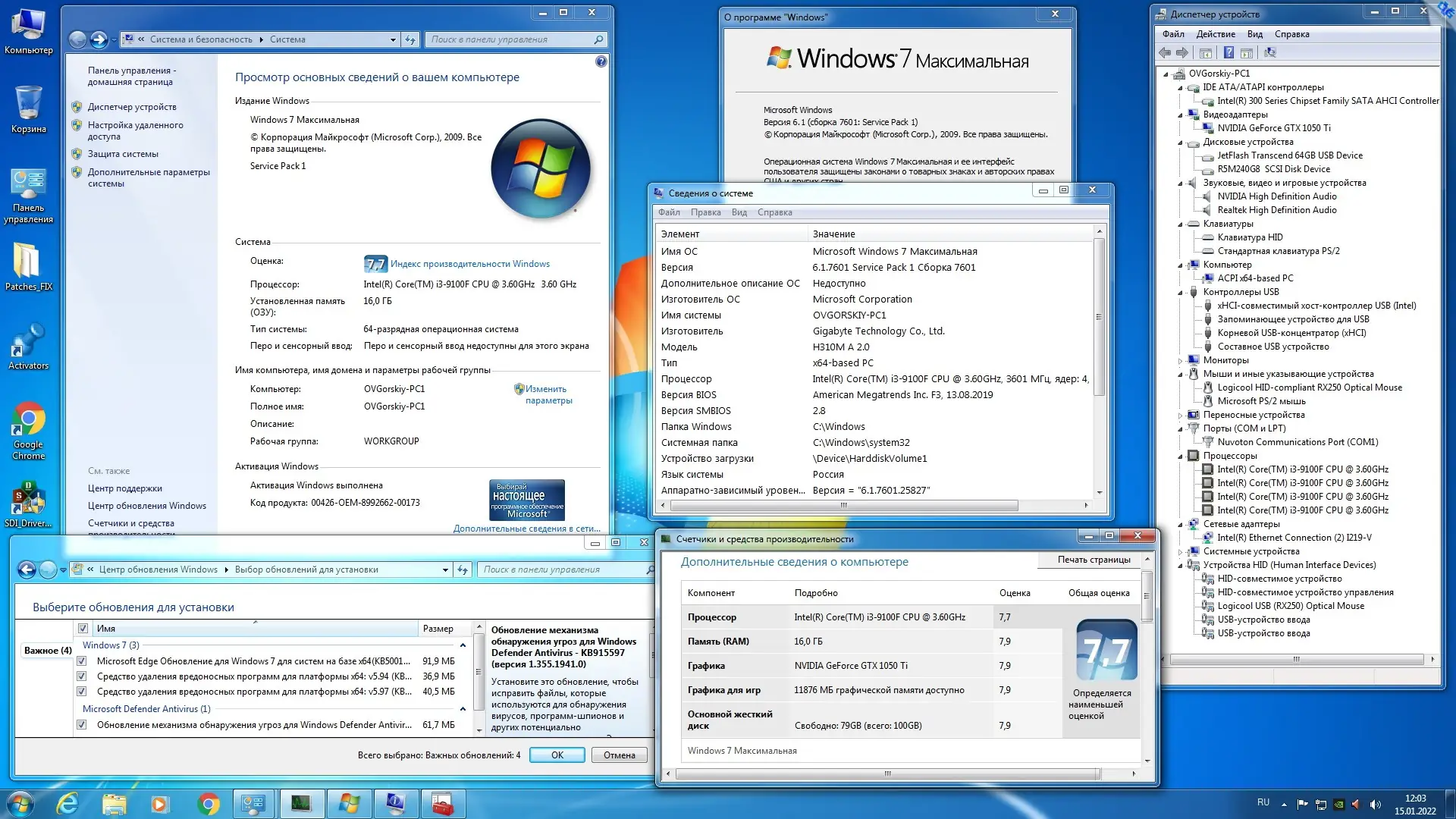 - Интегрированы все важные и рекомендуемые обновления по 12 января 2022 года, включая накопительные пакеты, такие как KB3125574, что соответствует условному SP2.