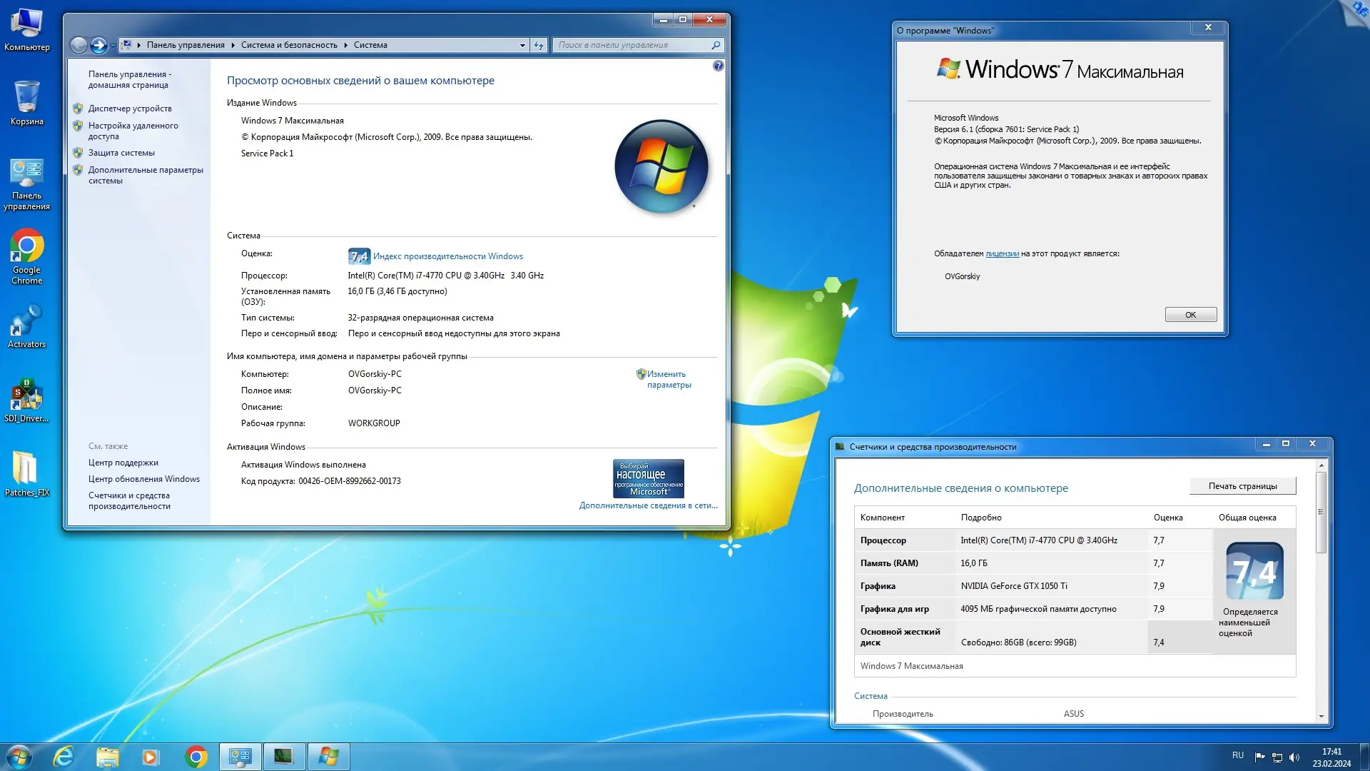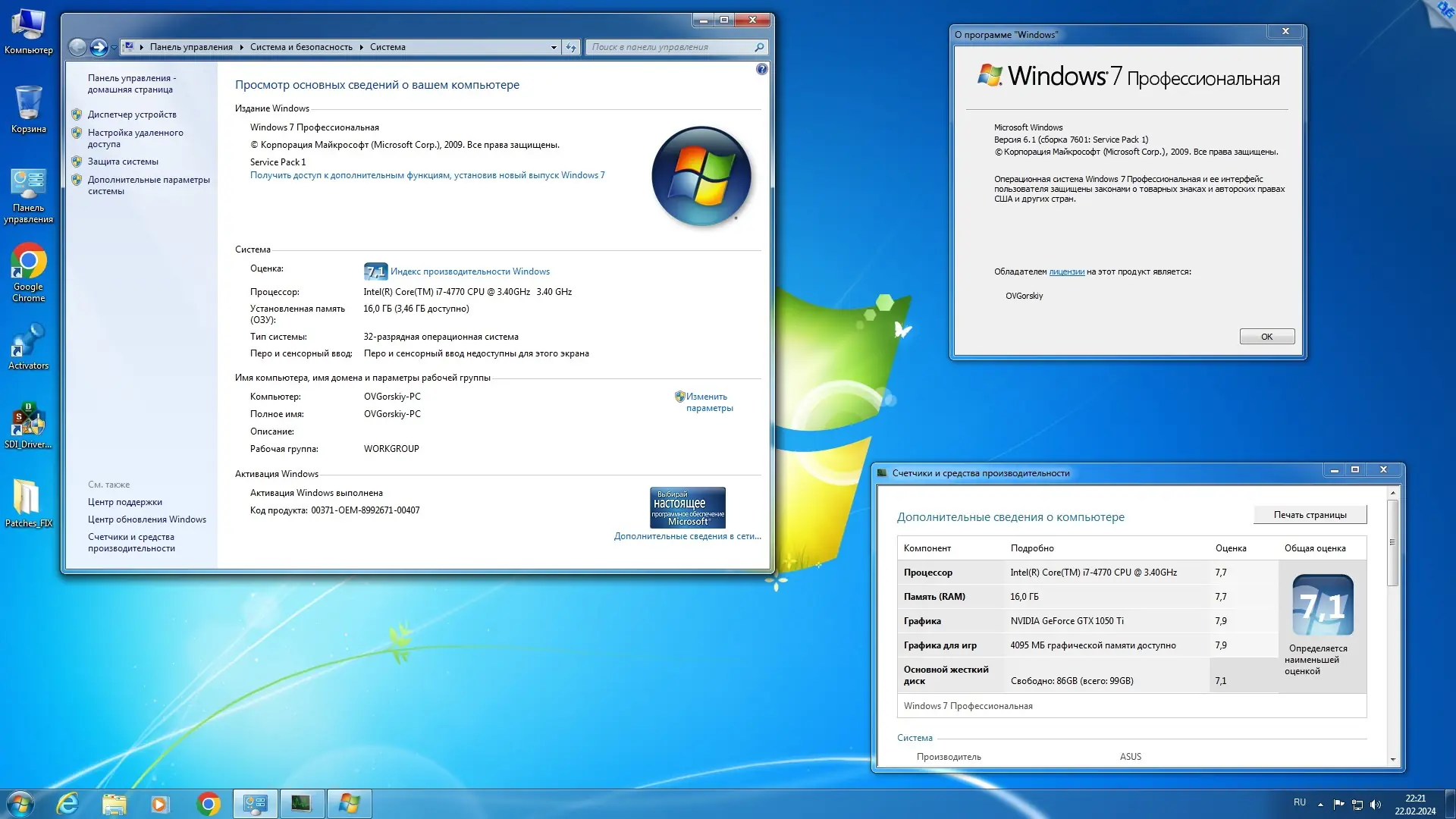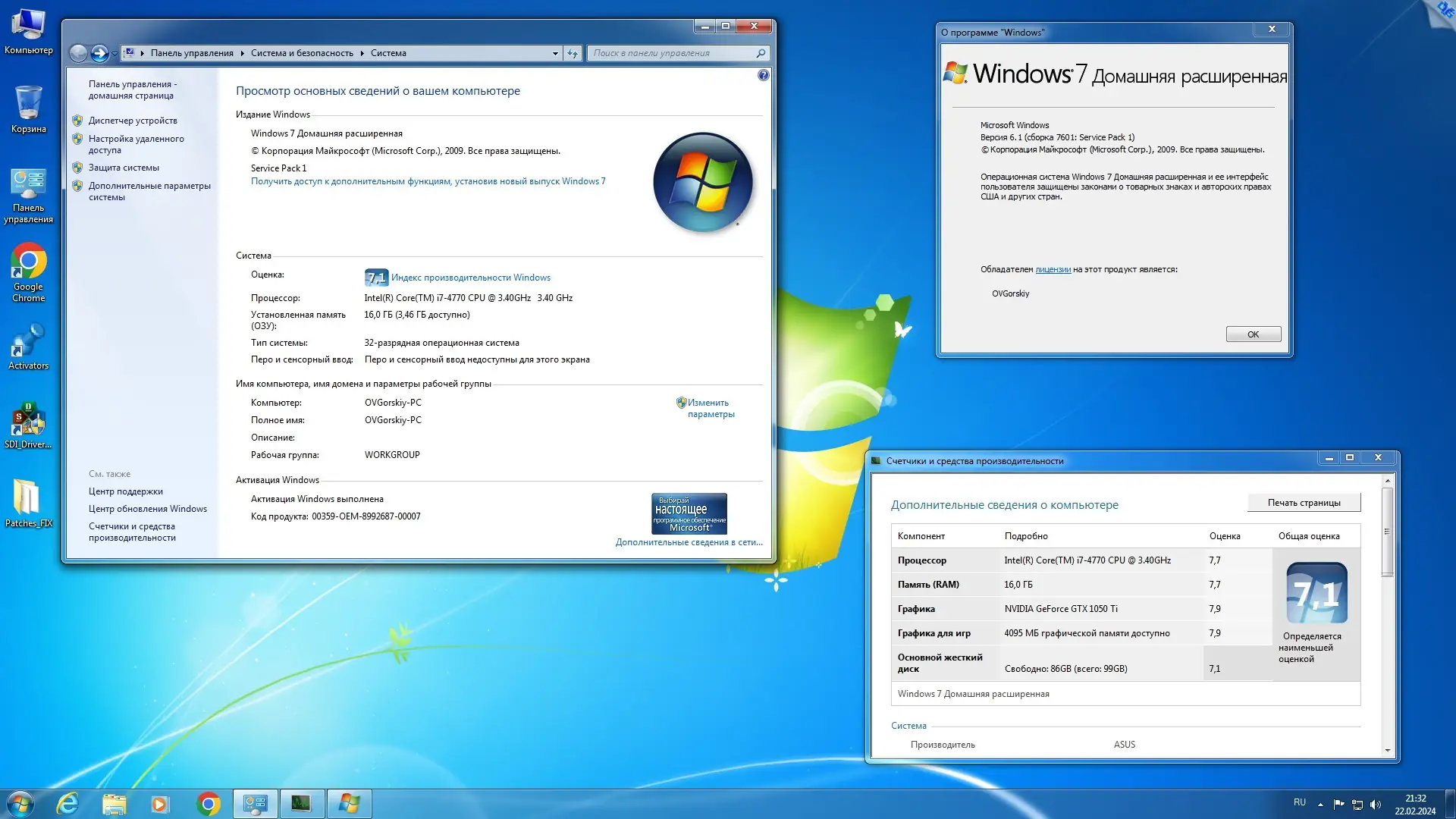 Для начала установки необходимо записать образ на DVD или создать загрузочную флешку с помощью Rufus v3.22 или Ventoy, учитывая тип системы — UEFI или Legacy. При запуске установки пользователь выбирает, с какого загрузчика — 32- или 64-битного — начать процесс, после чего указывает желаемую редакцию Windows 7. Установка проходит в стандартном режиме с ручным выбором раздела диска. После завершения основного этапа автоматически устанавливаются встроенные компоненты: .NET Framework, Chrome и прочие. На рабочем столе появляется папка с утилитами для настройки драйверов и активации. Для работы с современными процессорами Intel 7 поколения и AMD Ryzen рекомендуется использовать патч wufuc, который разблокирует установку обновлений.