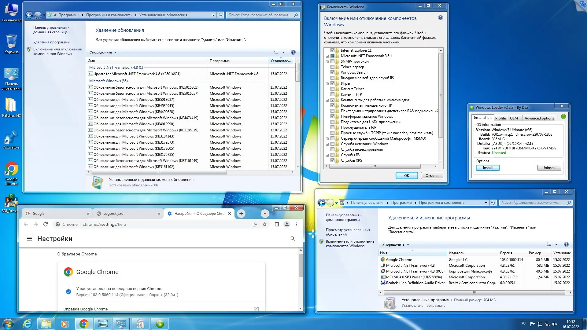 Данный образ представляет собой комплексное решение для установки операционной системы Windows 7 в различных редакциях, включая Starter, Home Basic, Home Premium, Professional и Ultimate как в 32-битной, так и в 64-битной версиях. Все компоненты основаны на лицензионных образах от Microsoft MSDN, что гарантирует высокую степень совместимости и стабильности. Сборка интегрирует последние доступные обновления, включая накопительные пакеты до июля 2022 года, а также дополнительные компоненты, упрощающие процесс настройки системы после установки.