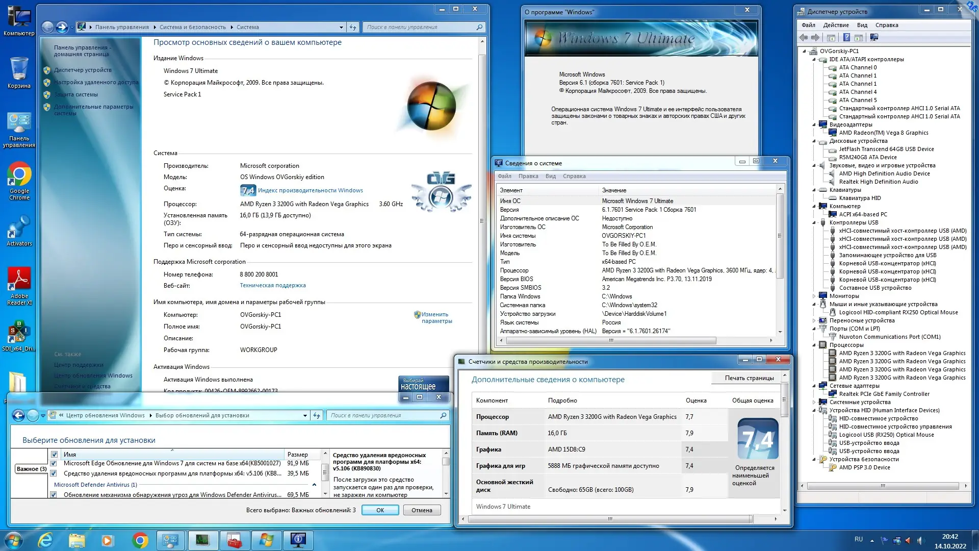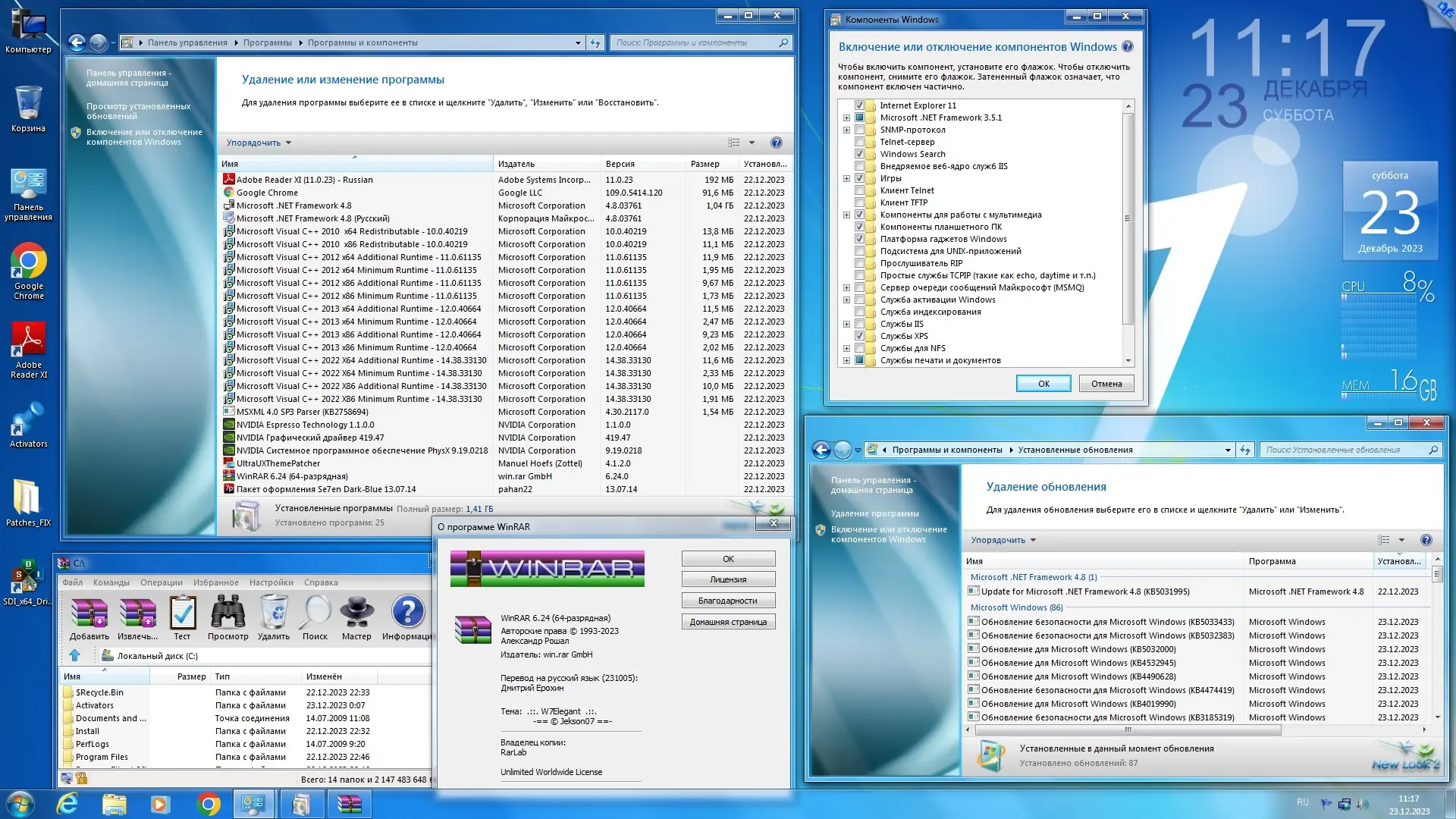 Данный образ операционной системы представляет собой модифицированную версию Windows 7 Ultimate x64 с глубокой интеграцией обновлений, приложений и компонентов, обеспечивающих высокую степень готовности системы к работе сразу после установки. Сборка разработана на основе официального дистрибутива от Microsoft и включает все важные и рекомендуемые обновления по декабрь 2023 года, включая крупное накопительное обновление KB3125574, что делает систему более стабильной и безопасной. В образ добавлены современные версии программ, такие как Google Chrome, WinRAR, Adobe Reader и .NET Framework 4.8, что избавляет пользователя от необходимости вручную устанавливать базовое программное обеспечение.