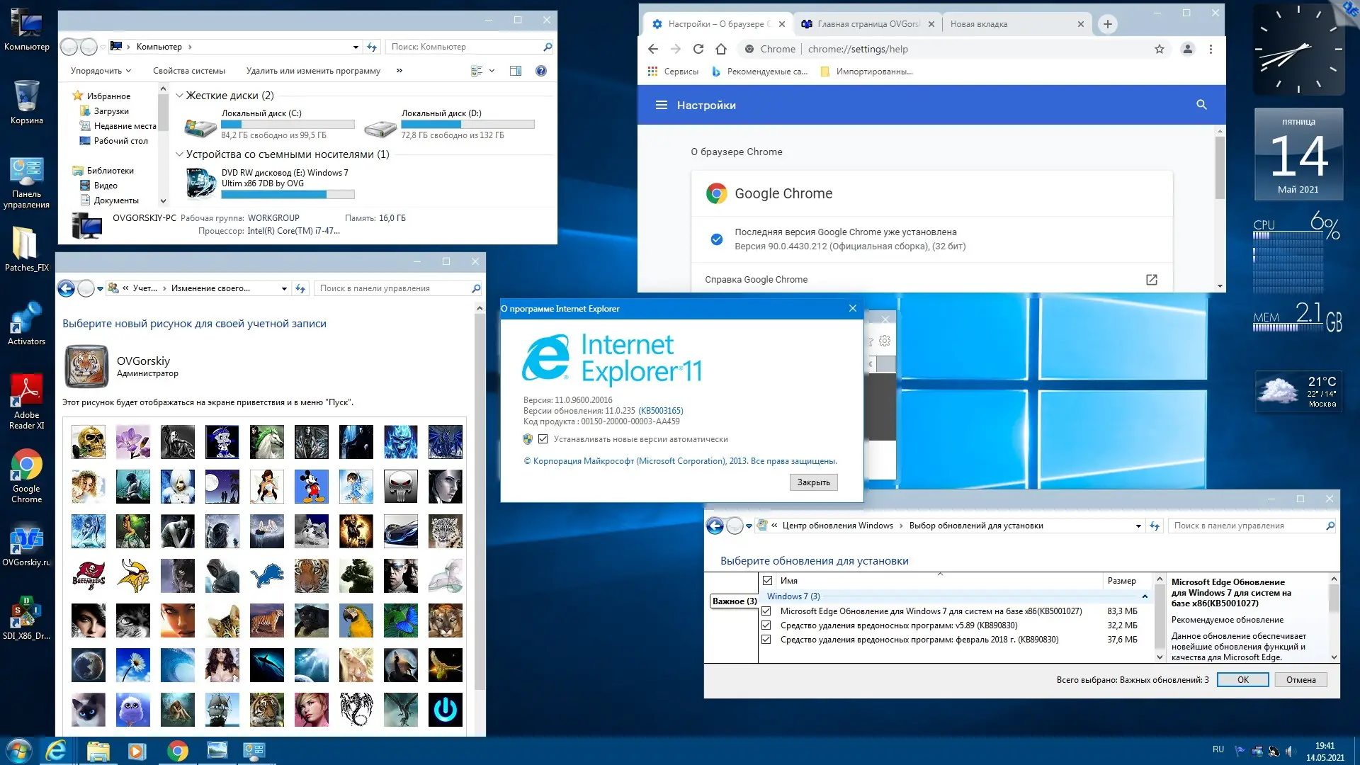 - Интегрированы все важные и рекомендуемые обновления по 12 мая 2021 года, включая крупные накопительные пакеты, такие как KB3125574.