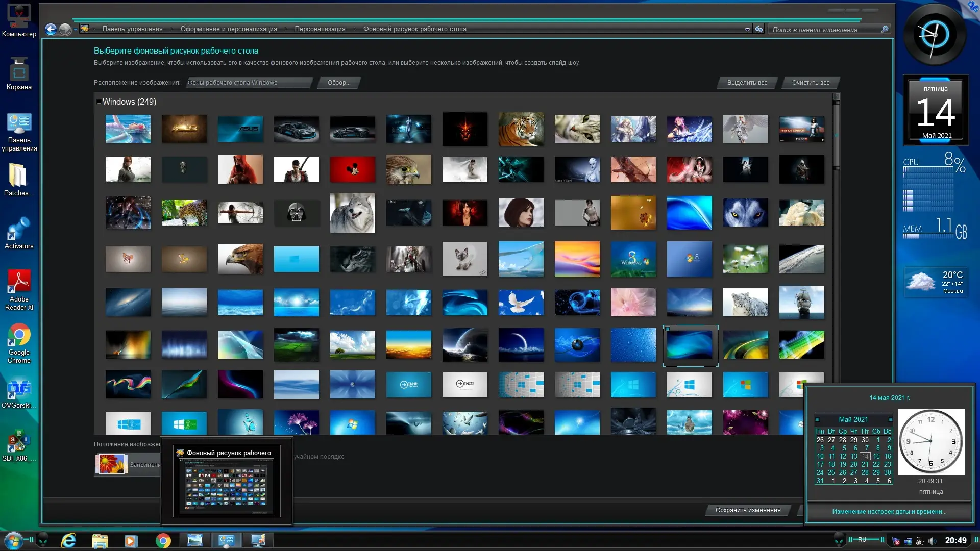 После установки система готова к использованию: на рабочем столе присутствуют основные приложения, включены удобные функции меню, отображаются скрытые файлы и расширения. Установленный пакет оформления можно в любой момент удалить через «Программы и компоненты», вернув систему к оригинальному виду. Для установки драйверов после развёртывания используется встроенный SDI-установщик с базовым набором драйверов. Все дополнительные инструменты, включая патчи для новых процессоров и утилиты активации, находятся на системном диске в папке Patches_FIX. Работа с обновлениями требует ручной установки некоторых компонентов через Центр обновления, особенно после окончания официальной поддержки Windows 7.