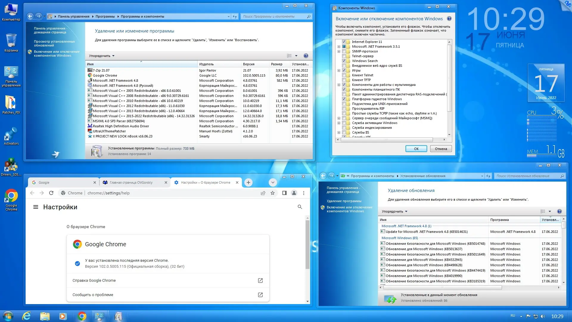 Сборка Microsoft Windows 7 Ultimate с интегрированными обновлениями по июнь 2022 года, включая дополнительные программы, пакет оформления в светло-голубом стиле и поддержку установки как на MBR, так и на GPT диски. Образ содержит 32-разрядную и 64-разрядную версии, объединённые в один установочный файл с использованием современного загрузчика от Windows 10. Подходит для установки на стационарные ПК и ноутбуки, включая системы на базе процессоров Intel Kaby Lake и AMD Ryzen при наличии совместимых драйверов.