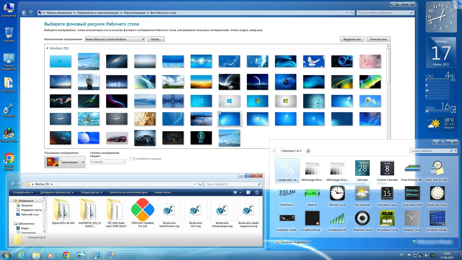 После установки операционной системы пользователь получает полностью настроенную среду с предустановленными компонентами. Для активации можно использовать лицензионный ключ или встроенные активаторы: Windows 7 Loader для MBR-дисков или KMSAuto Net для GPT. Рекомендуется отключить антивирус перед запуском активатора и добавить его в исключения. После активации система полностью функциональна, включая доступ к обновлениям через центр обновлений Windows. Для установки драйверов рекомендуется использовать встроенный SDI Installer или загруженные с официальных сайтов производителей драйверы. Особое внимание следует уделить видеодрайверам, особенно на платформах AMD Ryzen с интегрированным Vega 8, где может потребоваться модифицированный драйвер. Все системные настройки, включая UAC, гибернацию и файл подкачки, можно изменить через панель управления или твики из папки Patches_FIX.