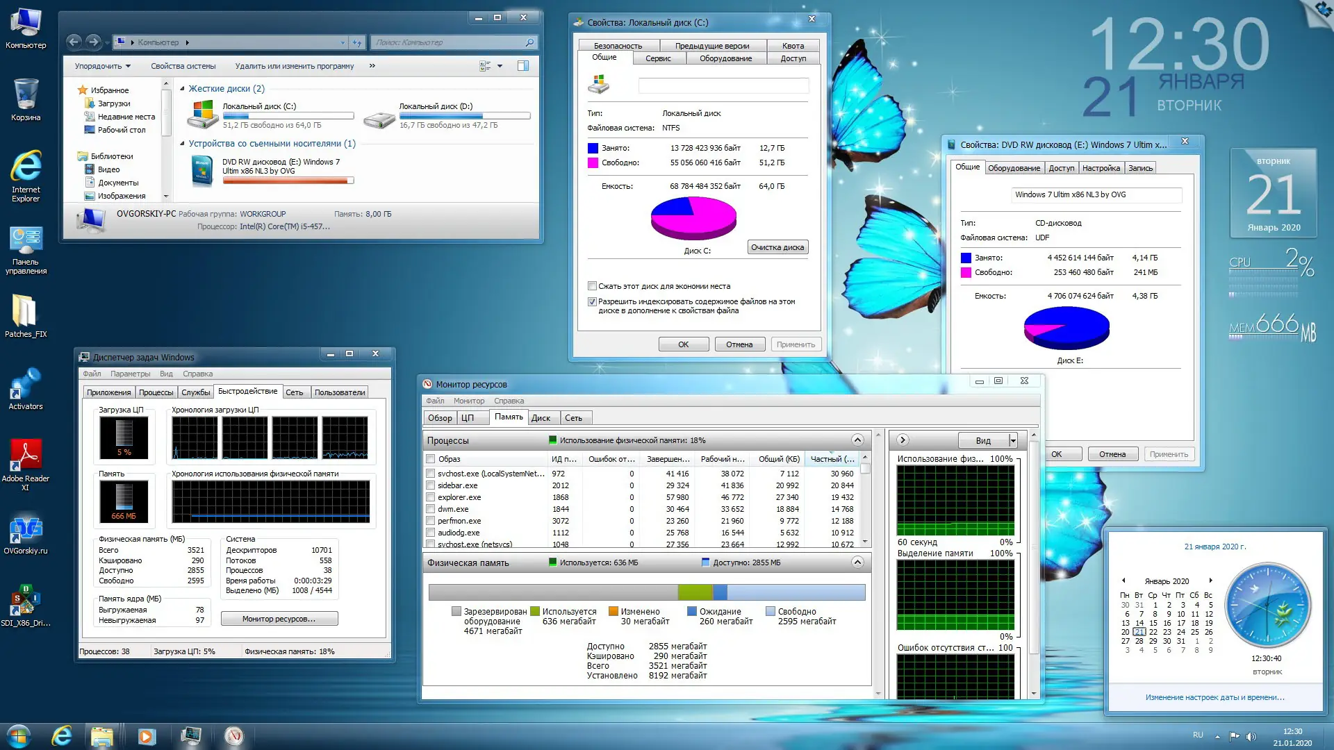 Сборка Microsoft Windows 7 Ultimate SP1 включает 32-разрядную и 64-разрядную версии с интегрированными обновлениями, предустановленными программами и фирменным оформлением в светло-голубой теме. Установка осуществляется с двух DVD, возможна загрузка через USB. Образы основаны на официальных дистрибутивах MSDN, дополнены драйверами, пакетами обновлений и утилитами для диагностики оборудования. Система готова к работе сразу после установки.